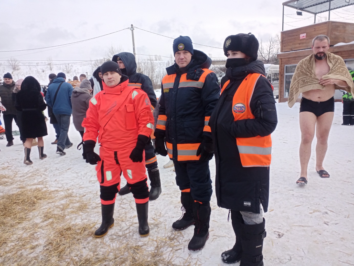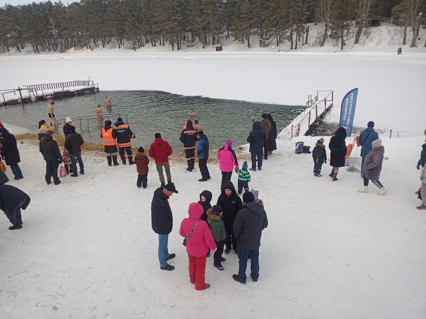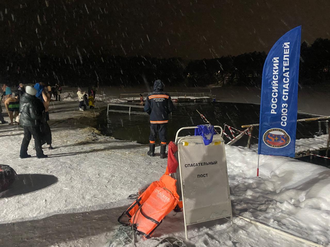 Спасатели АСФ г.Барнаул, члены «Российского союза спасателей», вели контроль за состоянием окунающихся в водоем, готовы были оказать им необходимую помощь. Когда церковный служащий привел работников и воспитанников детского интерната к Купели, спасатель Алексеенко Петр поддерживал желающих омыть лицо освященной водой.