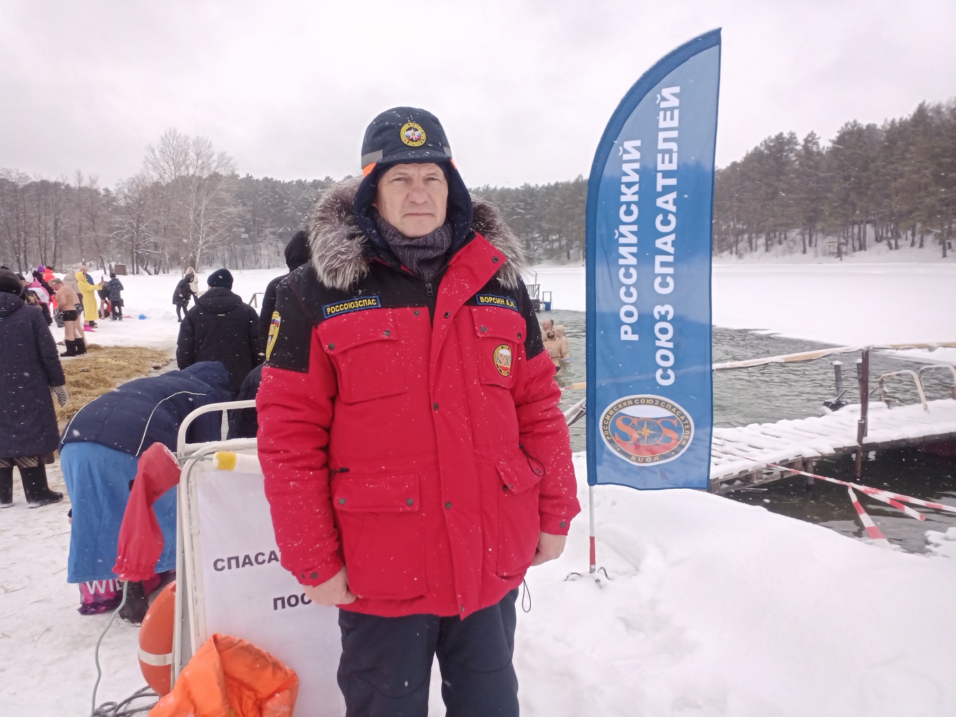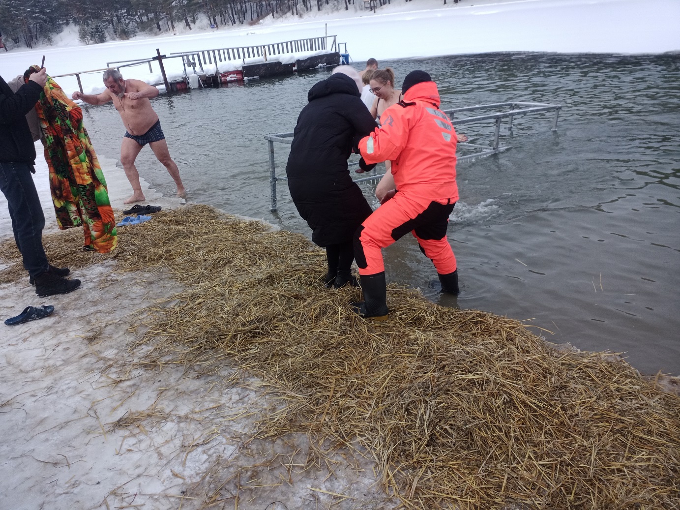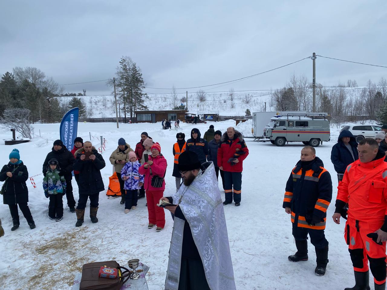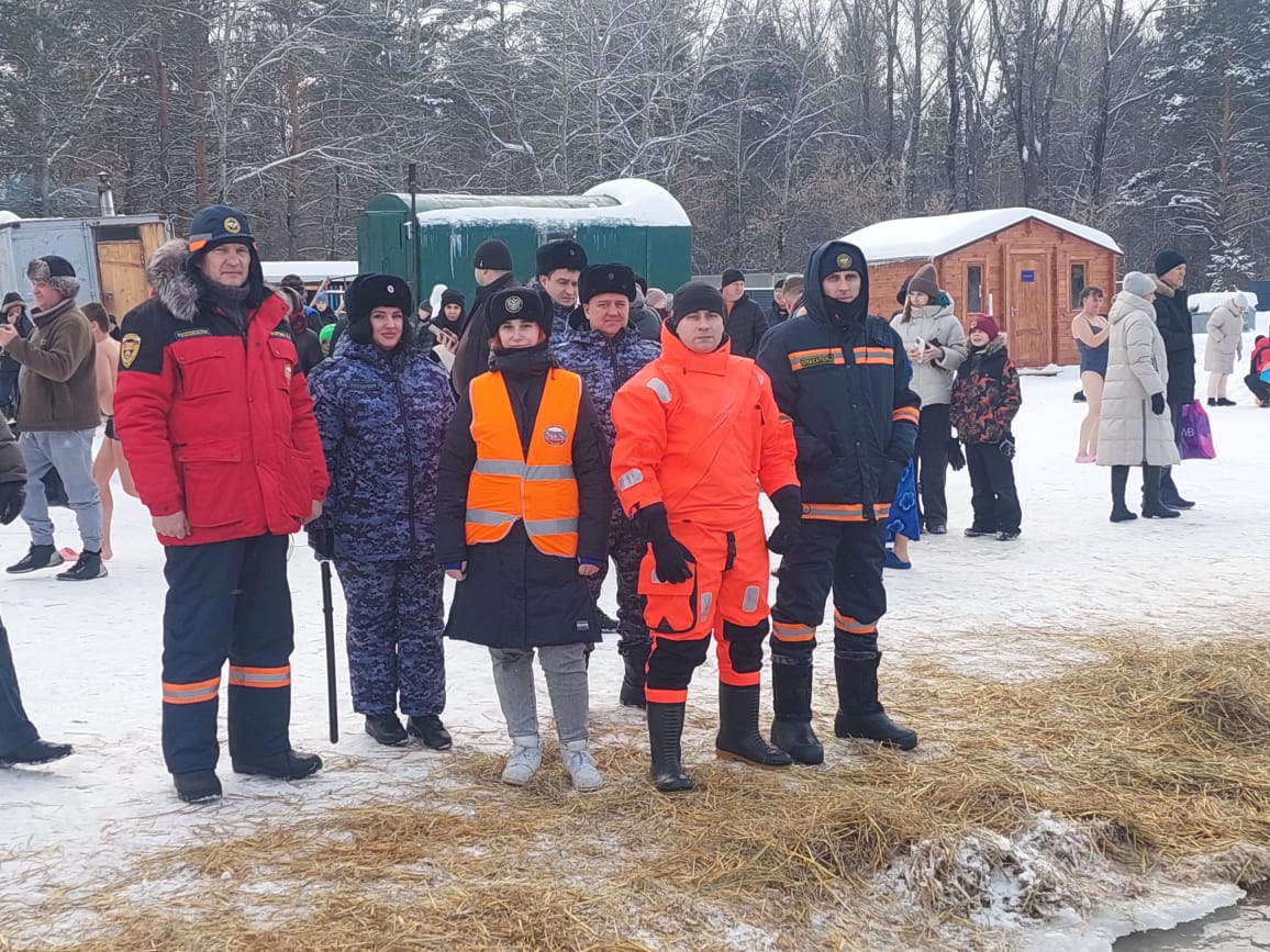 Спасатели АСФ г.Барнаул, члены «Российского союза спасателей», вели контроль за состоянием окунающихся в водоем, готовы были оказать им необходимую помощь. Когда церковный служащий привел работников и воспитанников детского интерната к Купели, спасатель Алексеенко Петр поддерживал желающих омыть лицо освященной водой.
