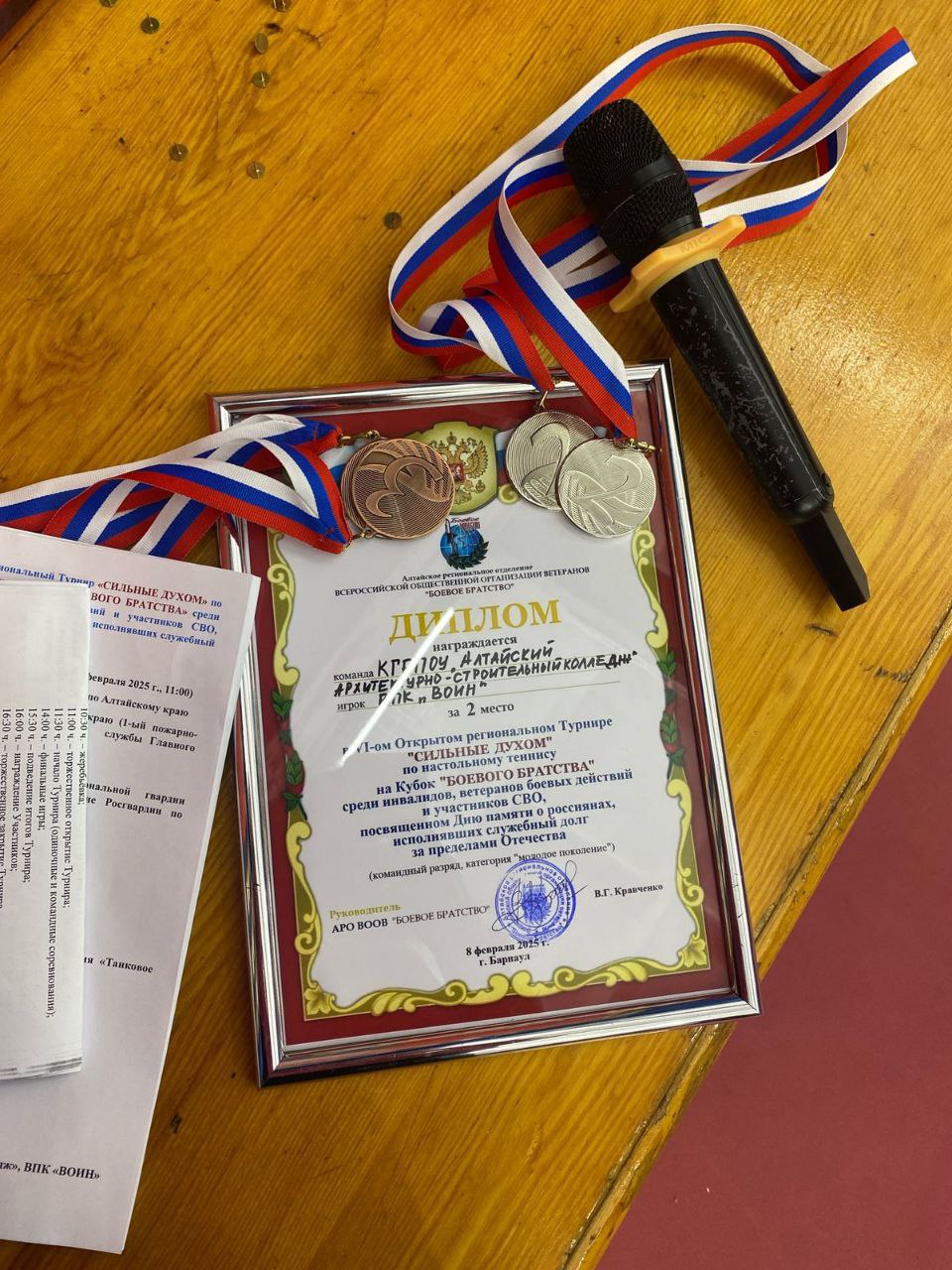 Команда в составе: Сметанина Павла - студента группы СЭЗС-31, Кузнецова Алексея, Батичевой Маргариты, Цирон Ярославы - курсантов ВПК «ВОИН» имени Героя Российской Федерации Виталия Зикратьева представляла Алтайский архитектурно-строительный колледж. Ребята стали вторыми в подгруппе «Молодое поколение». Поздравляем!