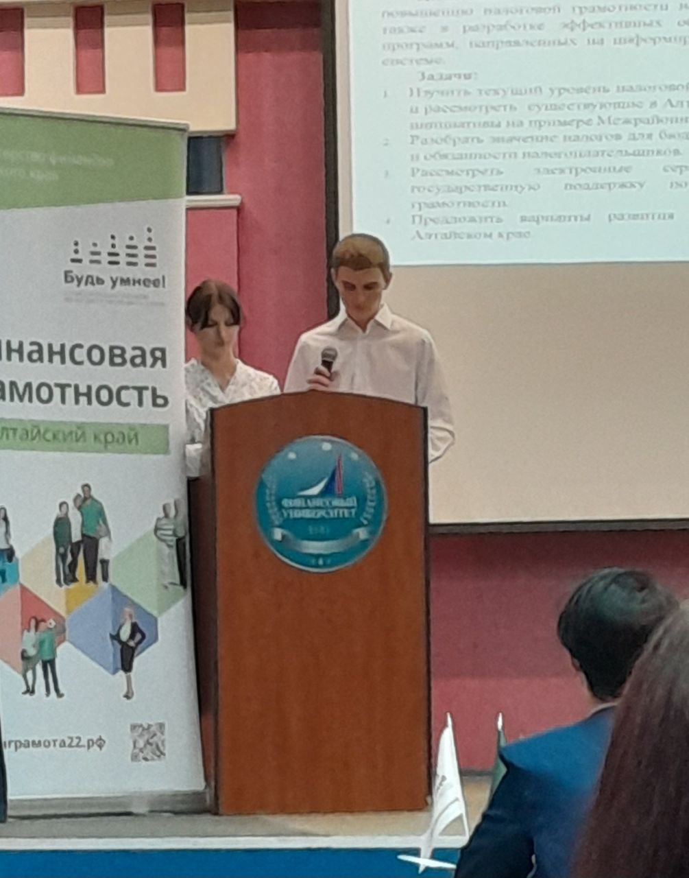 В конкурсе приняли участие студенты разных учебных заведений, представившие исследования по актуальным вопросам экономики и финансов. Особого внимания удостоилась работа «Налоговая грамотность: перспективы развития в Алтайском крае», подготовленная студентами первого курса группы ЗУ-41 Алтайского архитектурно-строительного колледжа – Софьей Раловец и Семеном Штокаленко. Их исследование, посвященное проблемам налоговой осведомленности населения и путям ее повышения в регионе, заняло второе место.