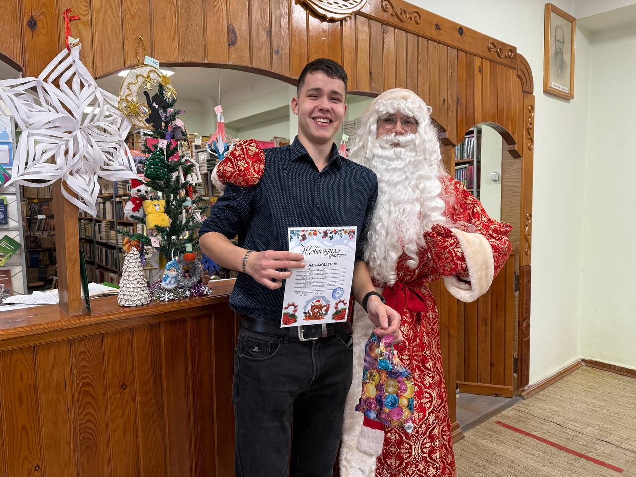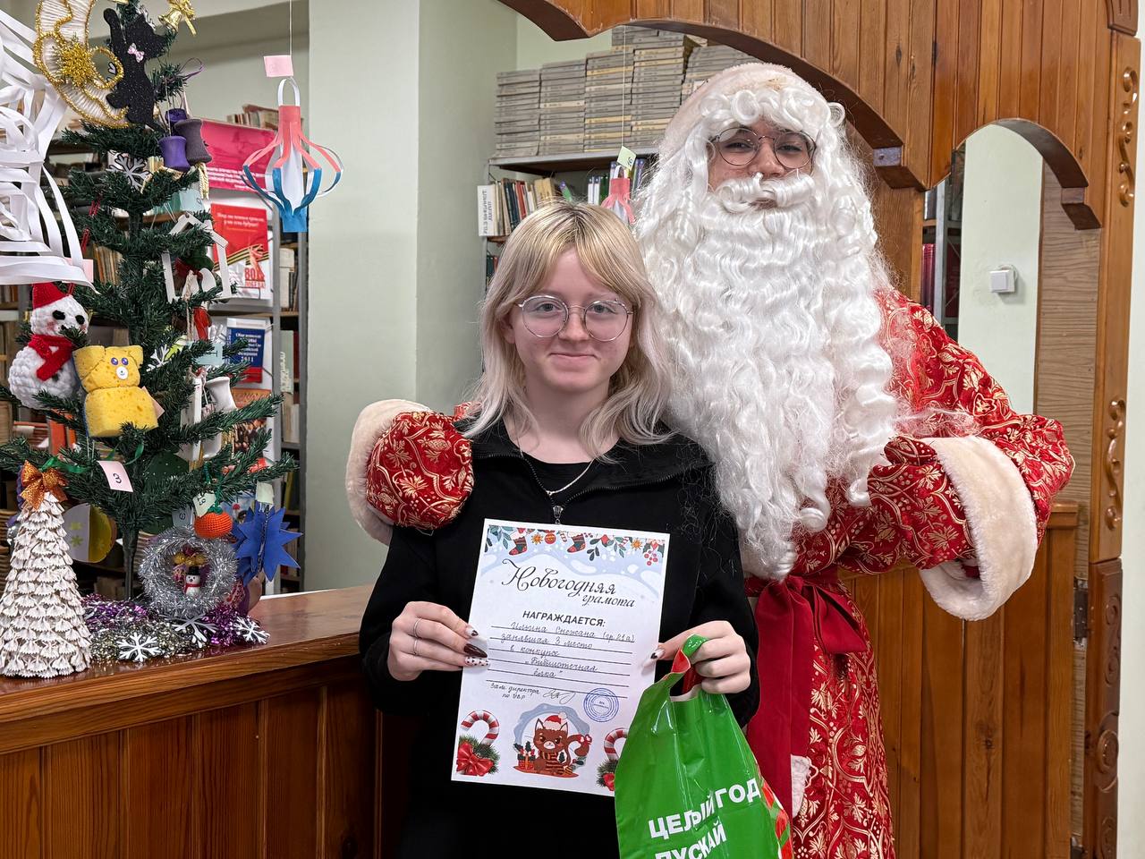 Студенты представили потрясающие изделия, созданные собственными руками из бумаги, картона, ткани, гипса, воска и даже бытовых материалов. Благодаря своему таланту и усердию студенты превратили обычные предметы в истинные шедевры. 24 декабря в библиотеке состоялось торжественное награждение победителей конкурса. Активисты Движения Первых вместе с Дедом Морозом лично поздравили ребят и вручили им памятные дипломы и подарки.
