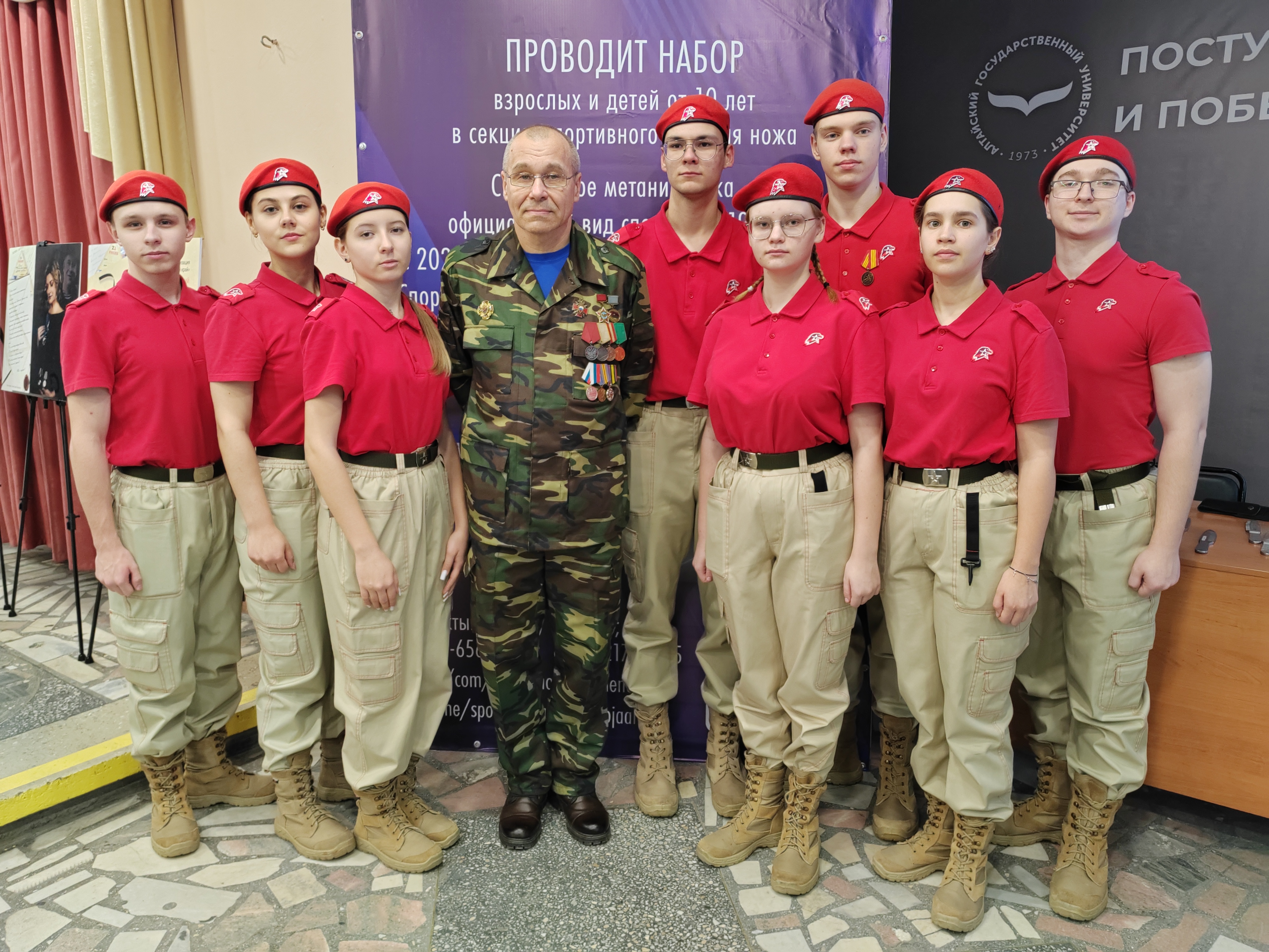 В концертном зале Алтайского государственного университета собрались кадеты, курсанты военно-патриотических клубов, студенты, бойцы спецоперации и их семьи, ветераны боевых действий разных эпох. Праздничная программа объединила участников всех поколений, напоминая о героизме и мужестве защитников Родины.