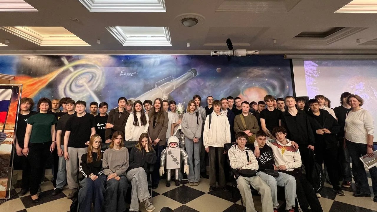 В честь Дня космонавтики преподаватели М. В. Ридель (биология), Л. А. Кириченко (физика) и Д. Д. Шуба (физика, советник директора) организовали для студентов Алтайского архитектурно‑строительного колледжа незабываемый поход в планетарий, в котором приняли участие 47 учащихся.