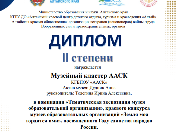 В Алтайском крае в рамках государственного задания прошёл краевой конкурс «Земля моя гордится ими», посвящённый Году единства народов России. Конкурс стал региональным этапом Всероссийского конкурса музеев образовательных организаций РФ в 2026 году.