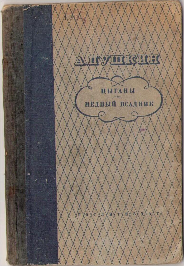 А из трех, небольших по объему, напечатанных хорошо читаемым шрифтом, изданных на желтой бумаге книг А.С. Пушкина, самая ранняя издана в 1936 году. Это «Цыганы. Медный всадник» с прекрасным графическим портретом А.С. Пушкина, предисловием Бориса Викторовича Томашевского, русского филолога, литературоведа, который читал ряд курсов в Институте истории искусств по творчеству А.С. Пушкина, работал зав. сектором пушкиноведения в Институте русской литературы.