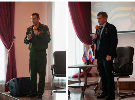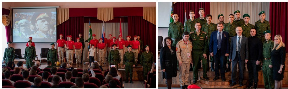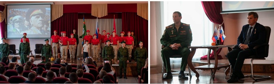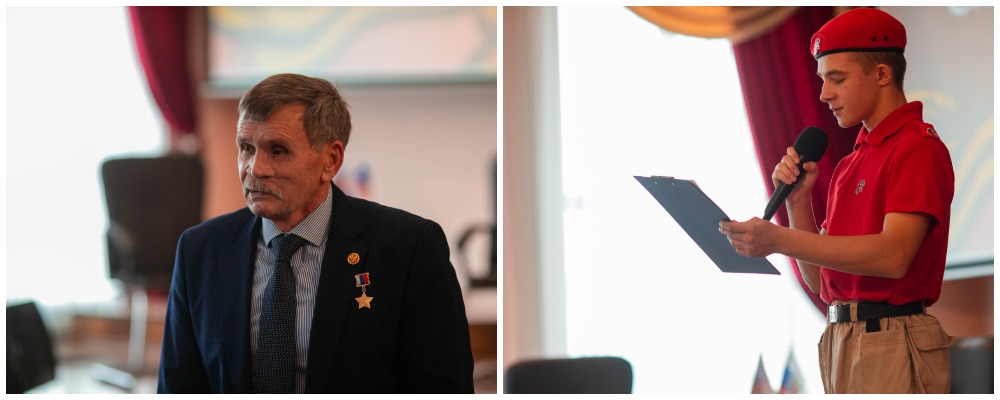 На встрече присутствовали Бочаров Вячеслав Алексеевич, Герой Российской Федерации, первый заместитель секретаря Общественной палаты Российской Федерации, Овчинников Евгений Михайлович, руководитель Алтайского регионального отделения ВВПОД «Юнармия».