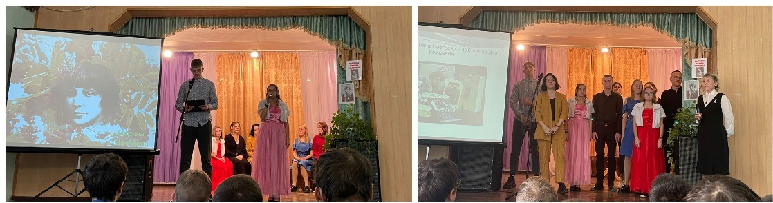 Стихи Цветаевой настолько мелодичны, что многие композиторы нашего времени обращались и обращаются к её поэзии. В течение вечера звучали песни на её стихи, а Доценко Е. и Серых А. очень трогательно исполнили вальс «Генералам двенадцатого года».
