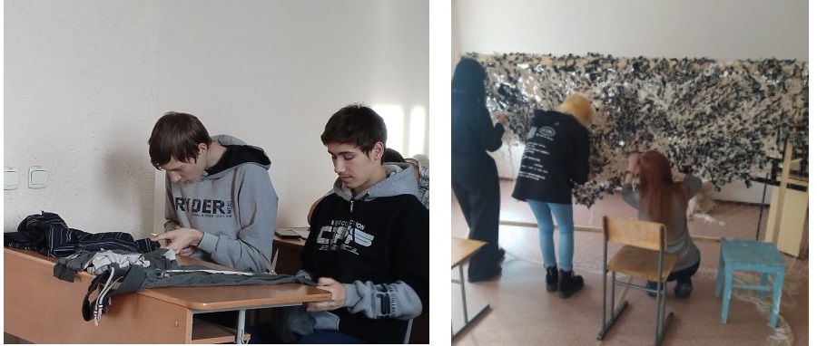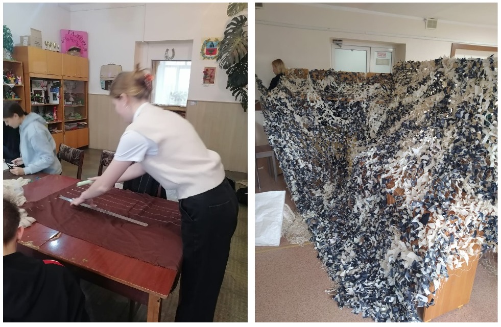Акция «Мы рядом!» имела большой отклик от студентов и педагогов. По всем учебным корпусам студенты стали приносить отрезы ткани. В свободную минуту режут её на полоски и уже готовые передают для обвязки сетей. Первыми освоили технику плетения девушки групп А-02, Д-02.