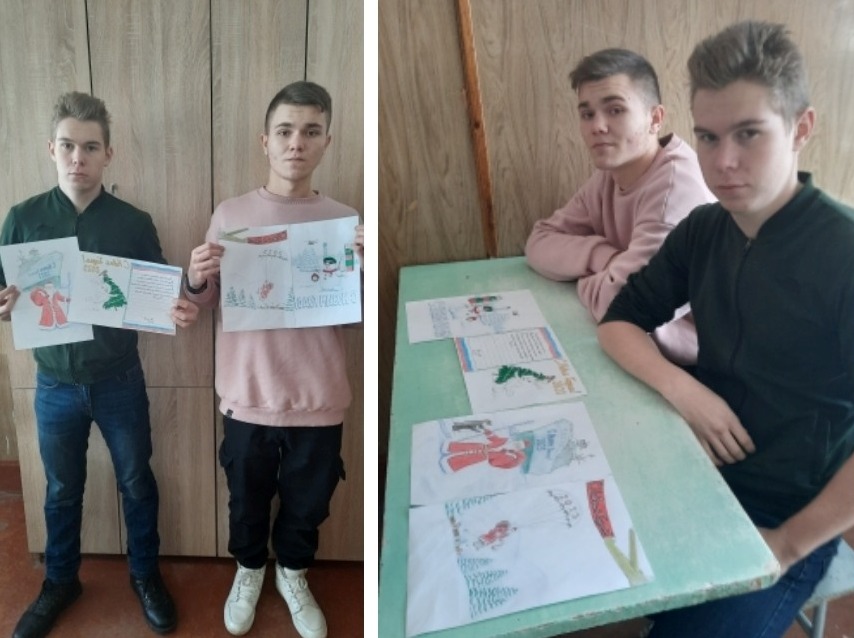 Обучающиеся группы № 19 (Куликов Михаил, Любин Владислав) под руководством классного руководителя, Похожаловой Ю. В., одни из первых на площадке Эмилии Алексеевой откликнулись на участие в акциях. Ребята выразили свою благодарность военнослужащим, принимающим участие в СВО и поздравили их с Наступающим Новым годом, пожелав успехов, здоровья и скорейшего возвращения к своей семье.