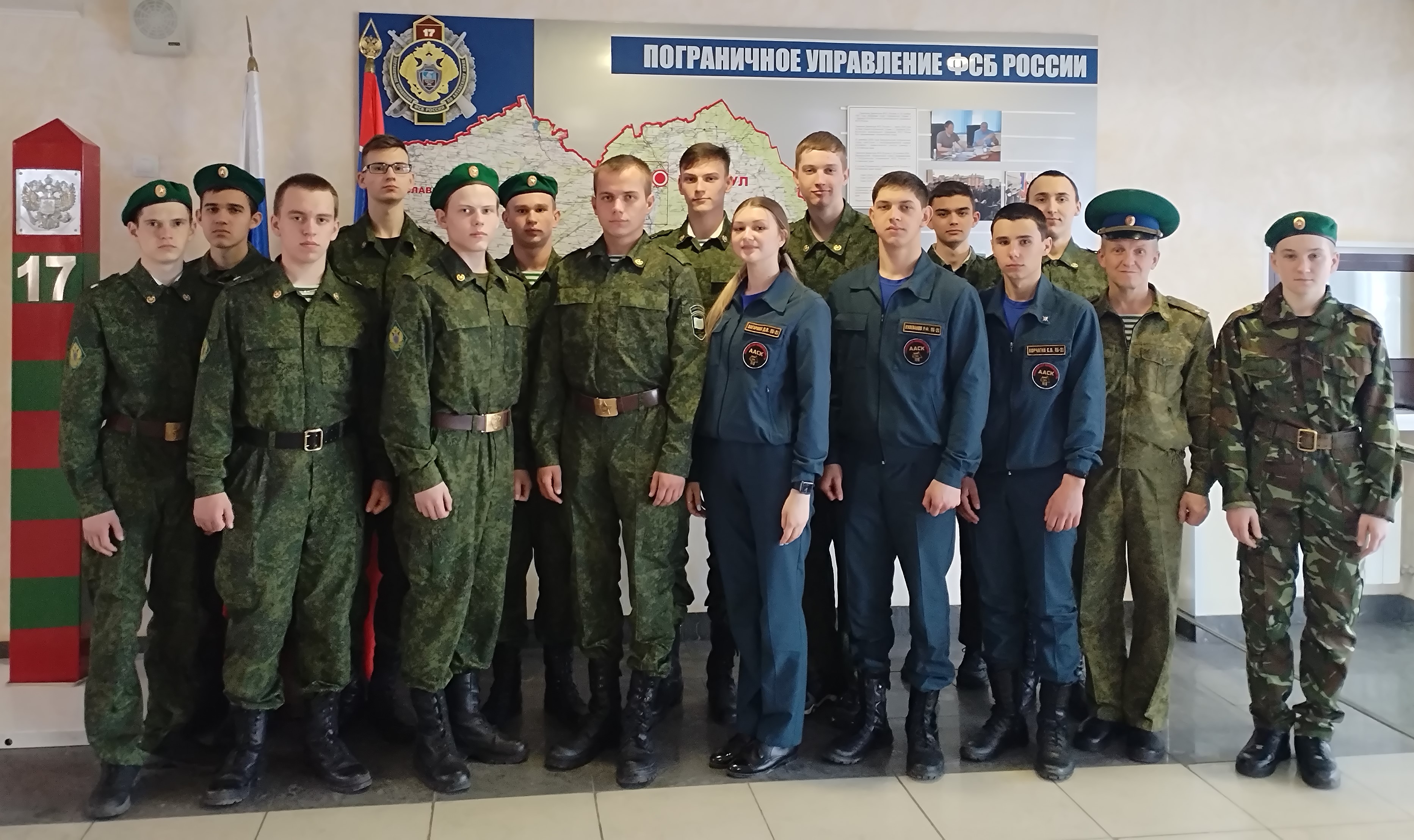 Накануне курсанты военно-патриотического клуба «Русские витязи» Алтайского архитектурно-строительного колледжа посетили Пограничное управление ФСБ России по Алтайскому краю с экскурсией.