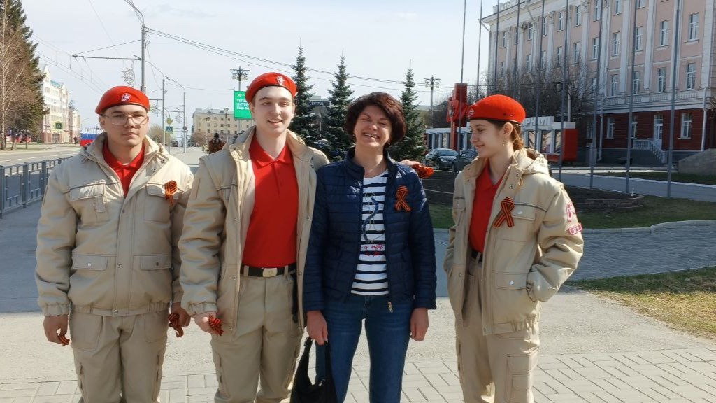 В преддверии Дня Победы юнармейцы раздают символ воинской доблести России на улицах городов и населенных пунктов страны. Георгиевская ленточка является символом героизма, воинской доблести и славы защитников России. Акция «Георгиевская ленточка» – это эстафета от прошлых поколений к нынешним. Эстафета народной памяти, уважения к подвигам отцов, дедов, прадедов, эстафета готовности защитить свою землю, свой народ, свой язык, свое имя.