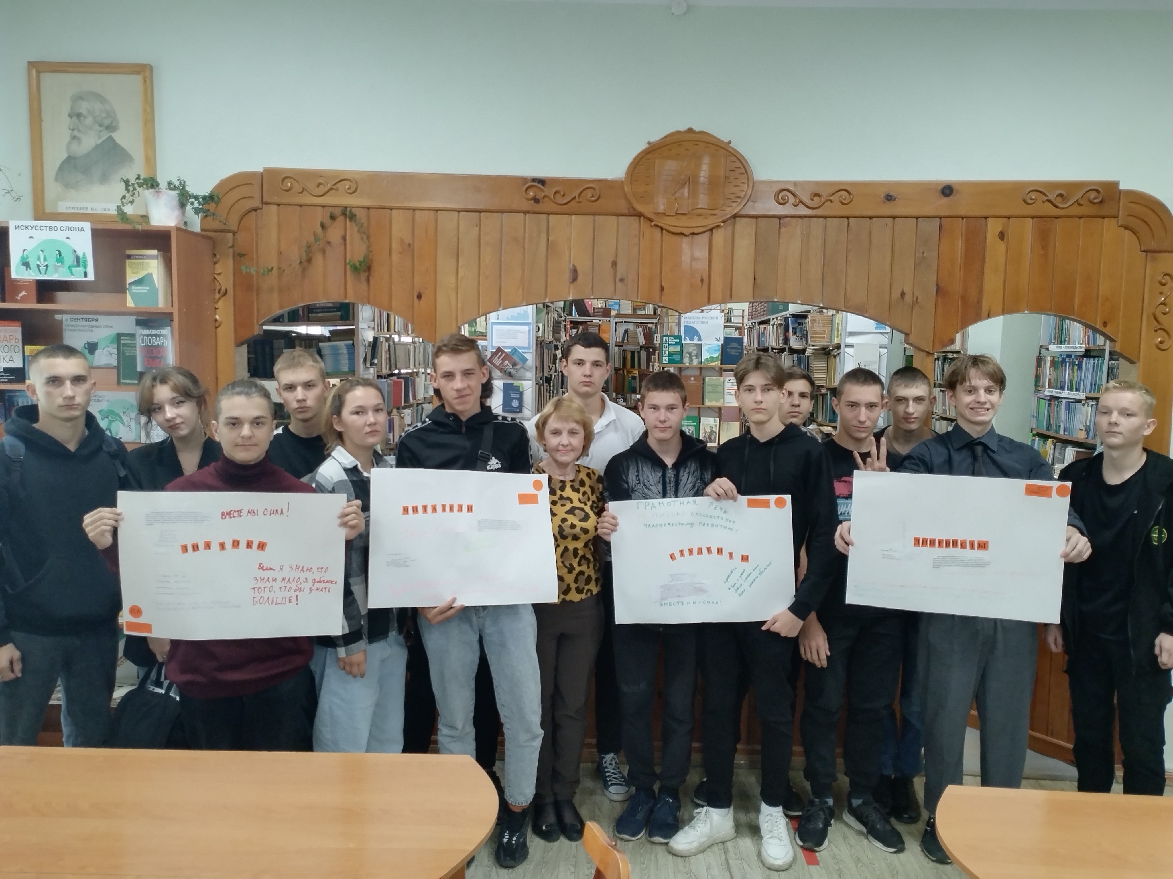Наталия Борисовна Тимофеева, преподаватель русского языка, провела занимательную викторину по русскому языку. Учащимся пришлось вспомнить правила орфографии, орфоэпии и синтаксиса. Помимо этого, студенты освежили в памяти теорию художественной литературы: жанры, роды и так далее. Также студенты подготовили собственные задания для проверки знаний своих одногруппников: кто-то составлял вопросы, а кто-то делал кроссворды.