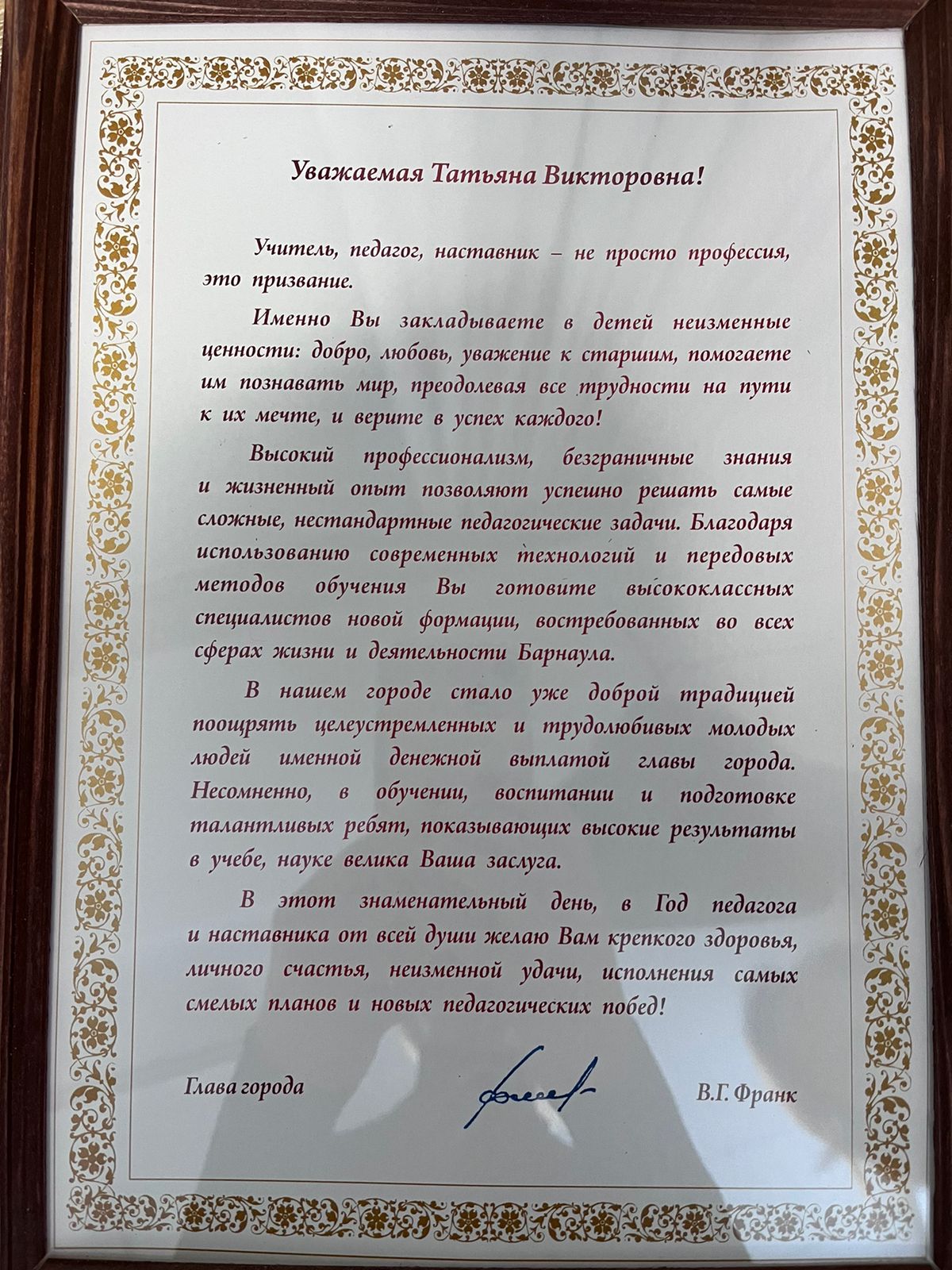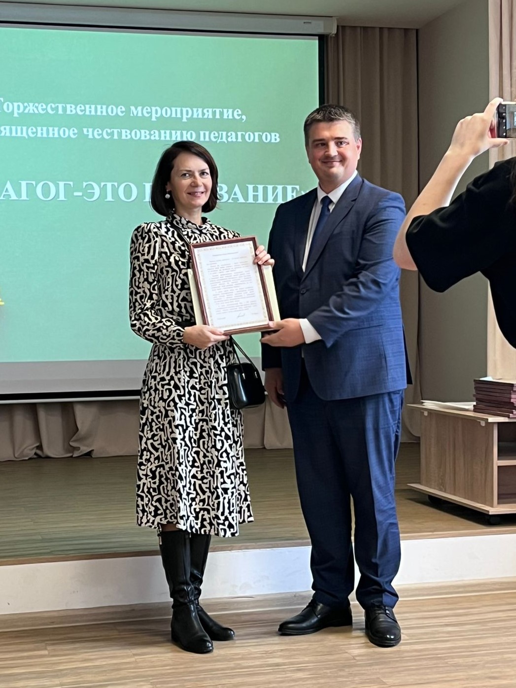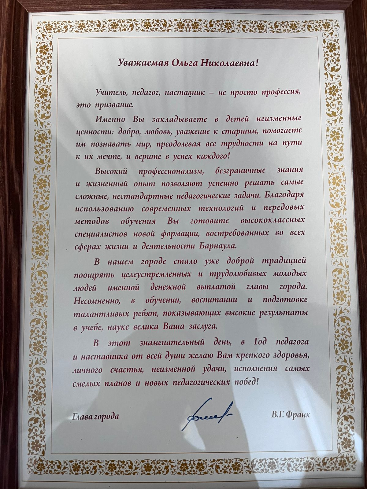 Торжественной поздравительной речью за вклад в образование поблагодарили педагогов Председатель совета директоров ССУЗов Алтайского края, директор КГБПОУ "Барнаульский государственный педагогический колледж имени В.К. Штильке" Самолетов Михаил Борисович и представители администрации города. От нашего колледжа награды получили преподаватели Окунева Татьяна Викторовна и Родина Ольга Николаевна.