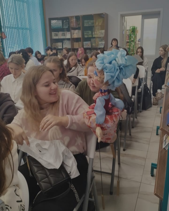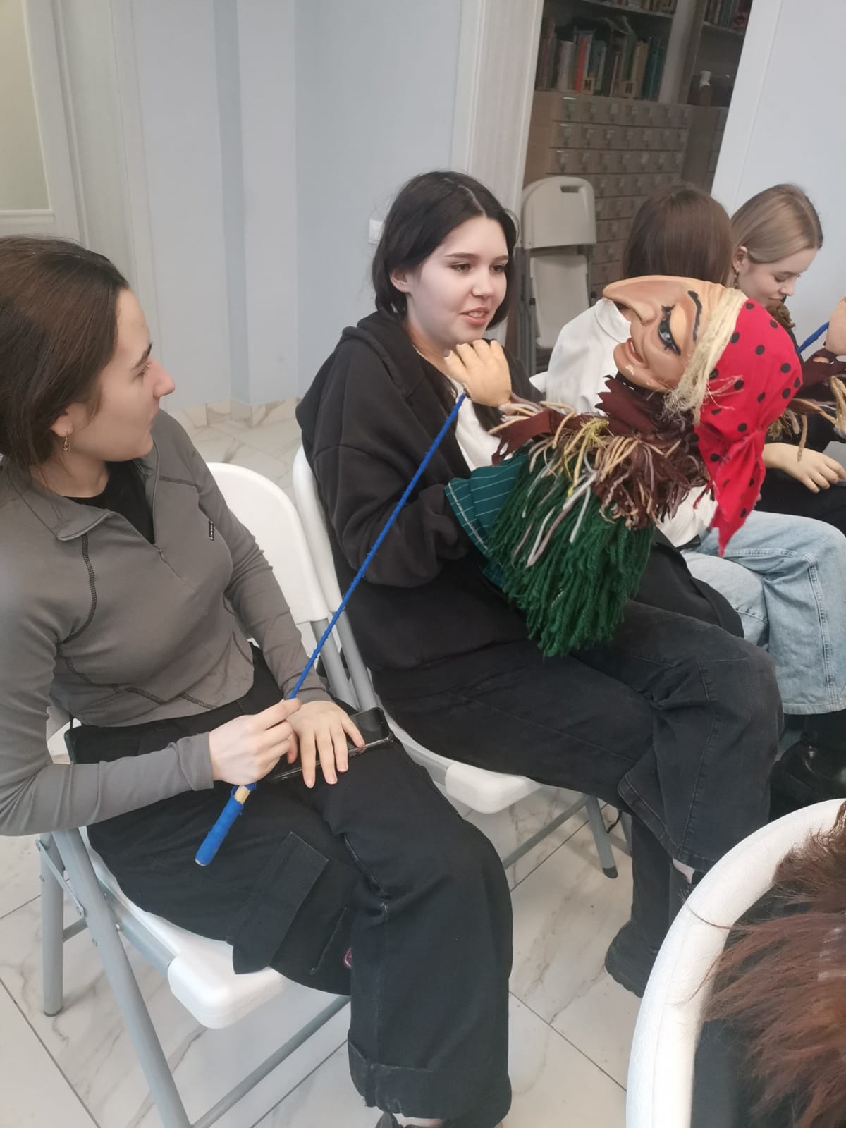Студенты с интересом слушали художника-скульптора и задавали ему множество вопросов. Они интересовались, какие материалы используются для создания кукол, как происходит процесс их изготовления, какие техники и методы применяются для достижения определенного эффекта.