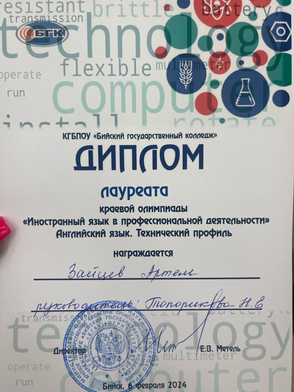 Достойно показав себя в первом этапе олимпиады по направлению «Английский язык. Технический профиль» и «Немецкий язык. Технический профиль», студенты нашего колледжа Дегтярев Вадим, Зайцев Артем (руководитель Топорикова Н.Е.) и Линдт Валентин (руководитель Киселева О.А.) приняли участие во втором этапе.