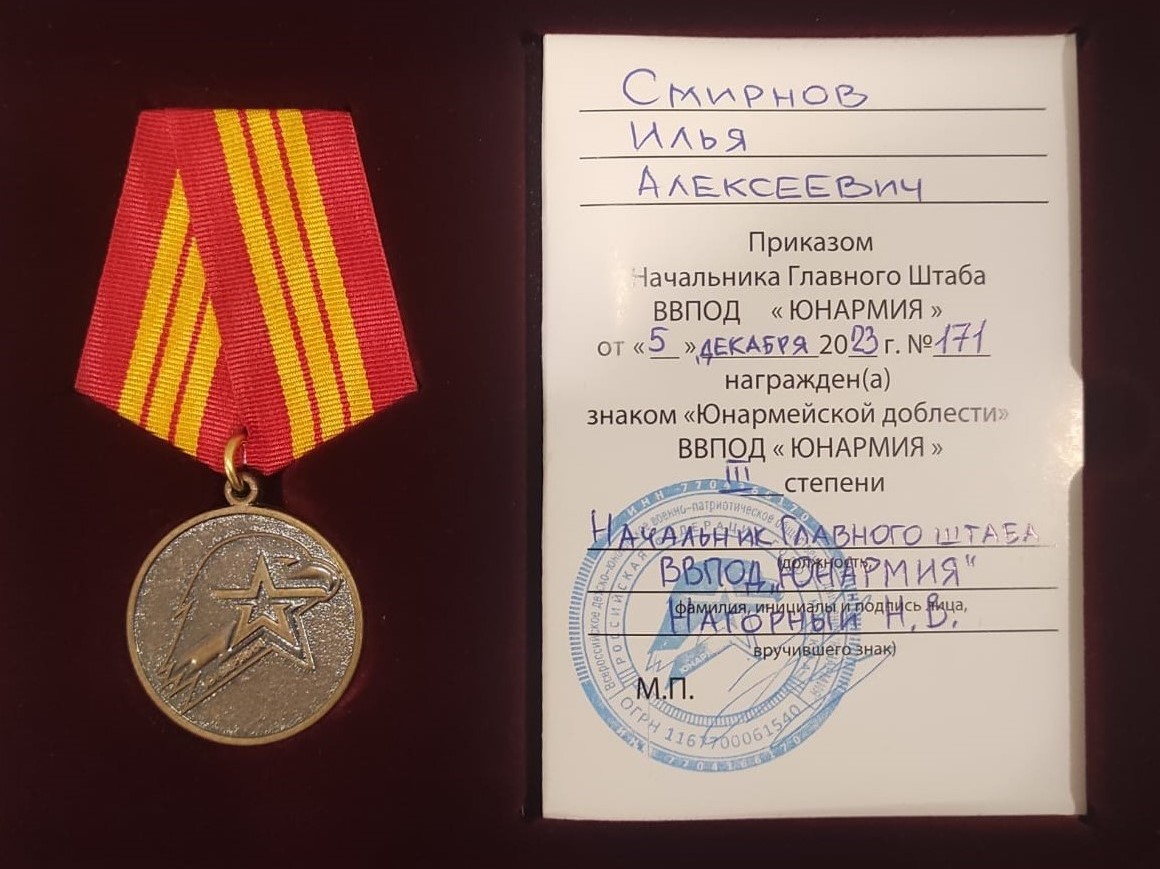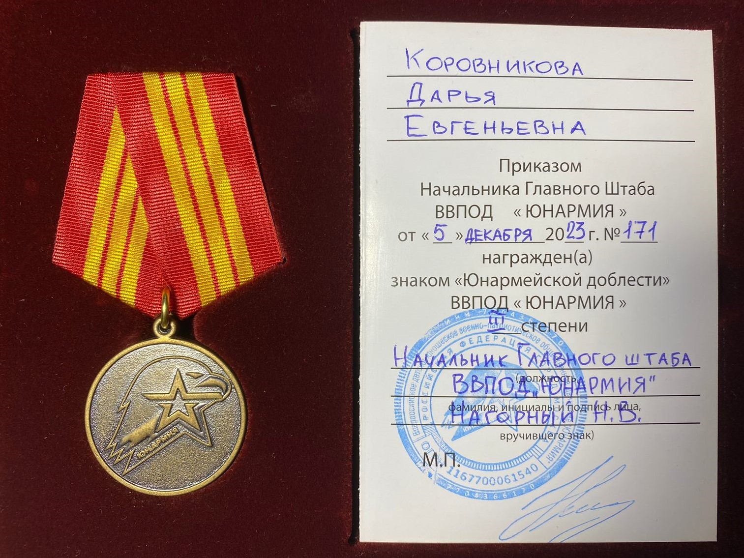 Медали вручены им за активное продвижение ценностей и задач юнармейского движения, а также за высокие результаты в военно-спортивной подготовке, учёбе и общественной жизни.