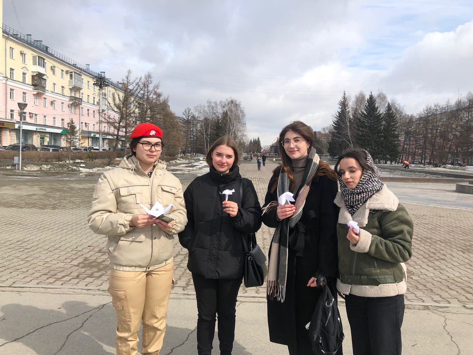 26 марта ребята военно-патриотического клуба «ВОИН» вышли на главную улицу города – проспект Ленина для того, чтобы рассказать жителям Барнаула об акции и подарить им символы этой акции - белых журавлей и цветок крокуса.