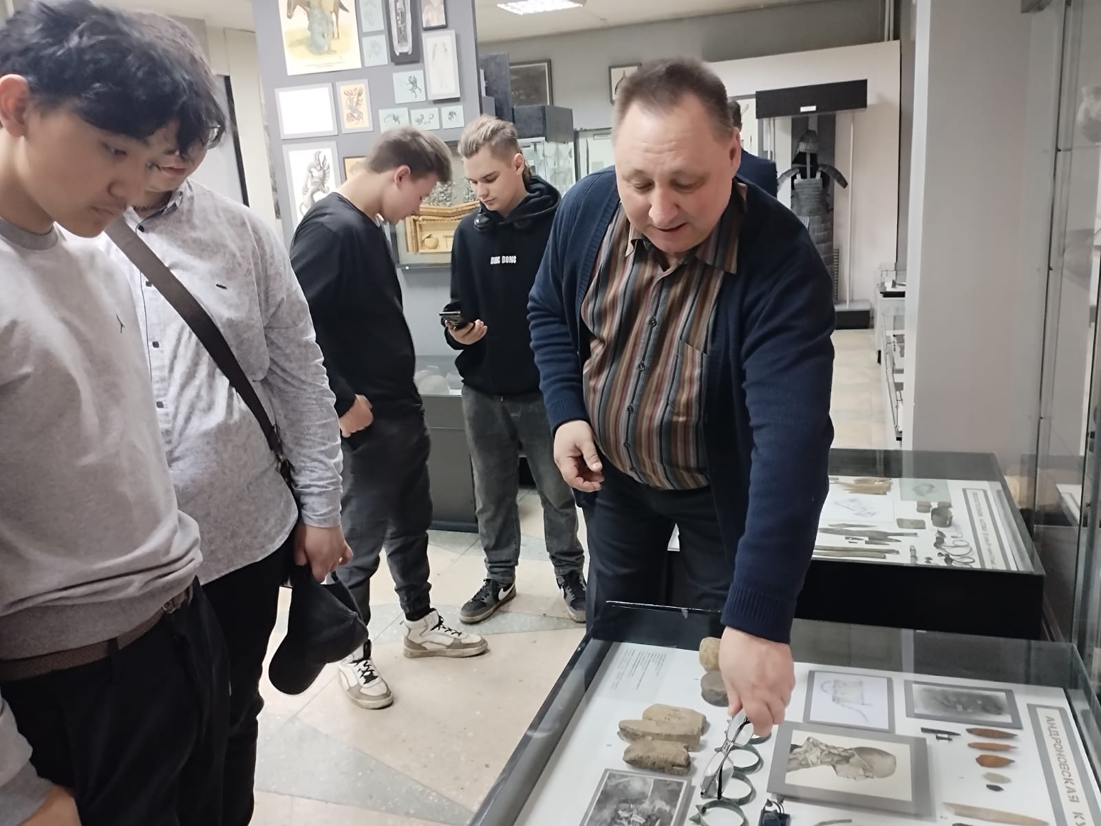 Директор музея Алтайского государственного университета Фролов Ярослав Владимирович провел увлекательную экскурсию по музею. Экспозиция музея последовательно освещает периоды истории Алтая начиная от палеолита до позднего средневековья. В экспозиции музея демонстрируются более 1 600 подлинных артефактов. В каждом разделе экспозиции выставлены уникальные находки, включающие предметы древнего искусства. Яркими объектами показа являются созданные сотрудниками музея реконструкции захоронений энеолита и тюркского времени.