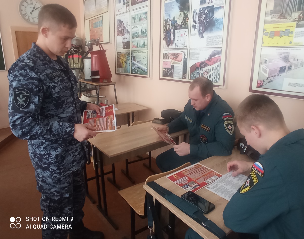 Беседа со студентами была посвящена организации пожарной безопасности, соблюдение требований пожарной безопасности в быту и на службе. Студентам подробно рассказали про службу в Росгвардии и ее составляющие: ОМОН, СОБР, ФГУП, «Охрана», а также высшие учебные заведения по профилю специальности.