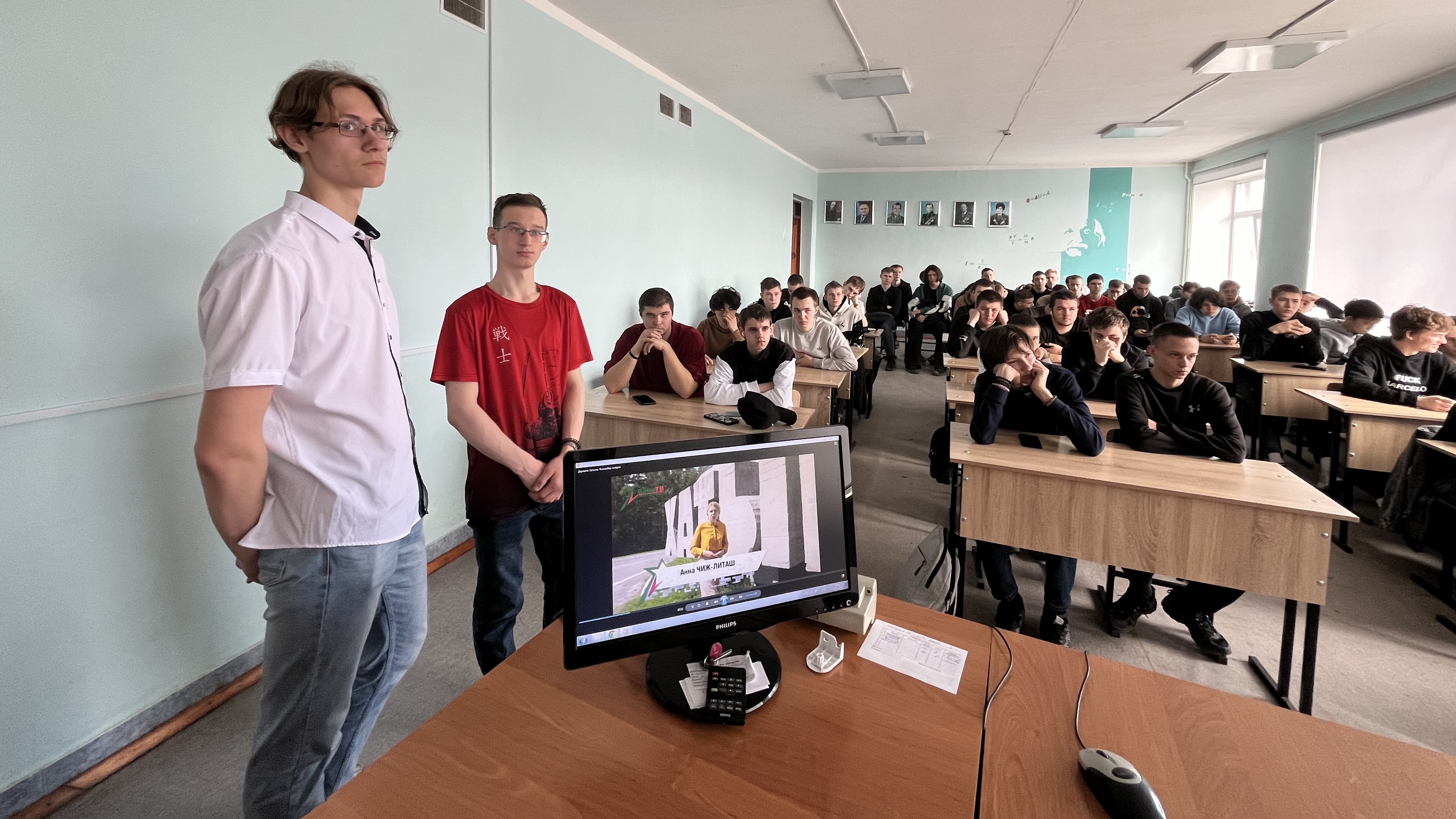 На площадке Эмилии Алексеевой, 84 в рамках работы ПЦК гуманитарных дисциплин  прошел урок Мужества, подготовленный Киселевой О.А., Куприковой И.Н., Похожаловой Ю.В. для обучающихся 1 и 2 курсов. Ведущие Вальков А. и Чесноков К. (гр. 18.) трогательно раскрыли трагические события того времени, используя для наглядности презентацию и видеоматериалы.