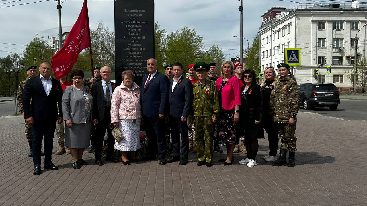 Торжественная церемония возложения цветов прошла у памятного знака "Алеша", посвящённого Алексею Скурлатову.