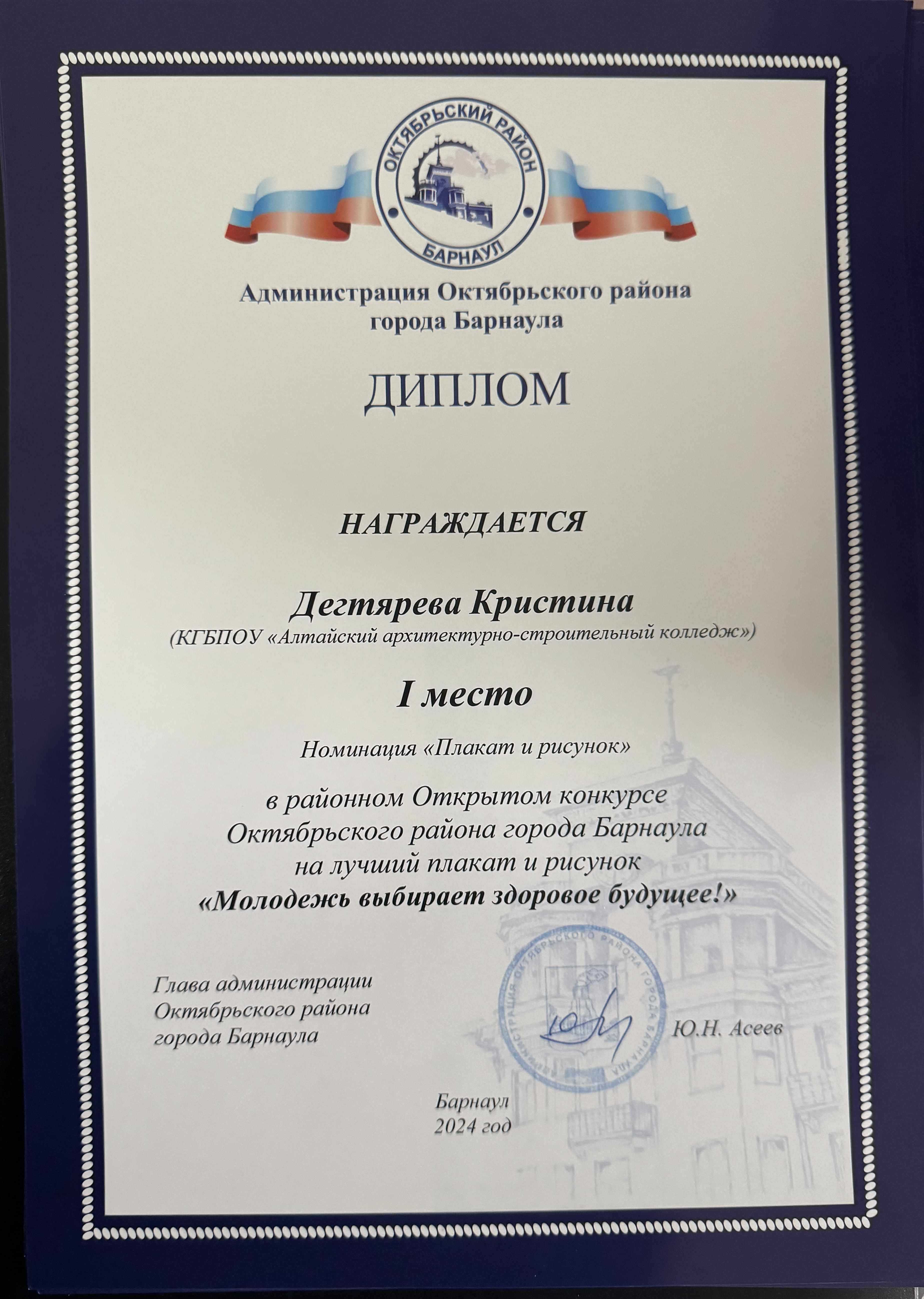 Администрация Октябрьского района объявила открытый конкурс плакатов и рисунков «Молодежь выбирает здоровое будущее». Студенты специальностей "Дизайн (по отраслям)" и "Архитектура" приняли в нем участие.