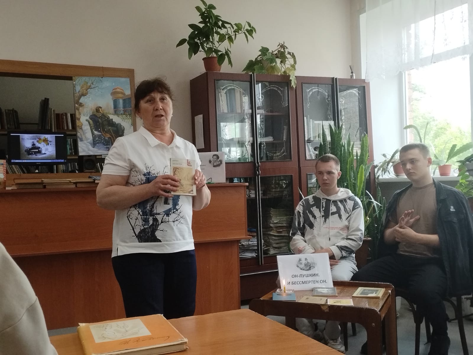Библиотекарь Четверякова Т.А. подготовила и представила тематическую подборку «Пушкинский день, день русского языка». Ребята получили массу впечатлений, от творчества великого русского поэта Александра Сергеевича Пушкина, узнали о его жизни, проанализировали произведения и обсудили их значение.