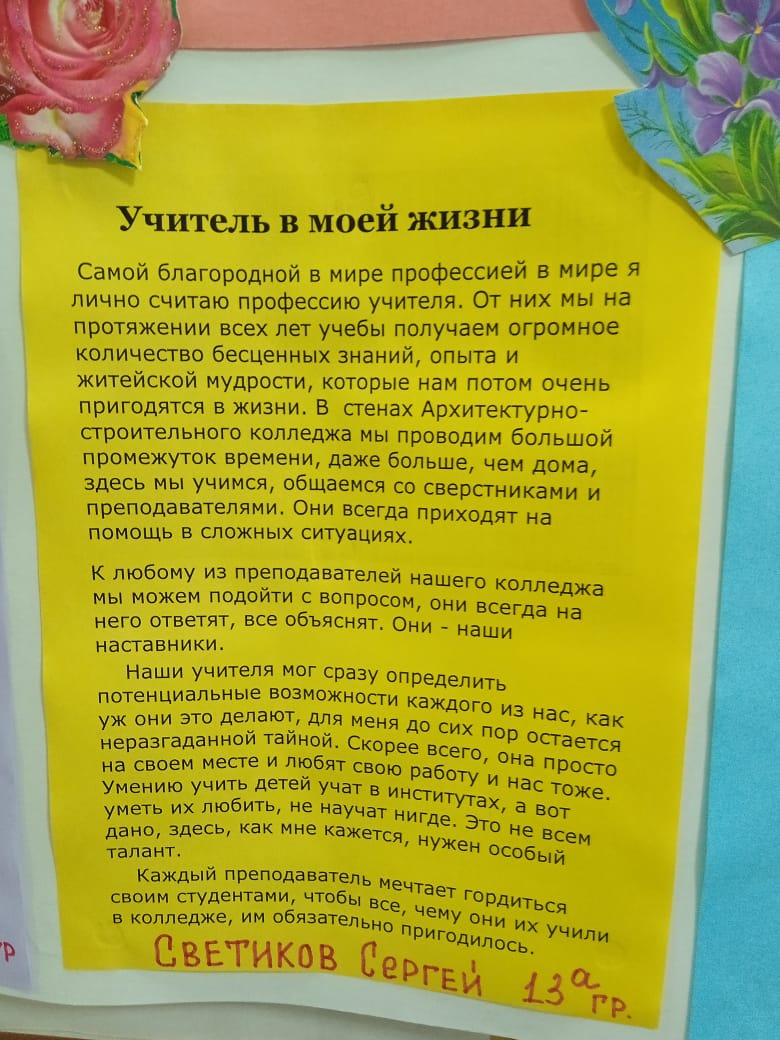 В рамках месяца мероприятий, посвященных Дню СПО студенты Алтайского архитектурно- строительного колледжа приняли участие в акции «Спасибо педагогу!».