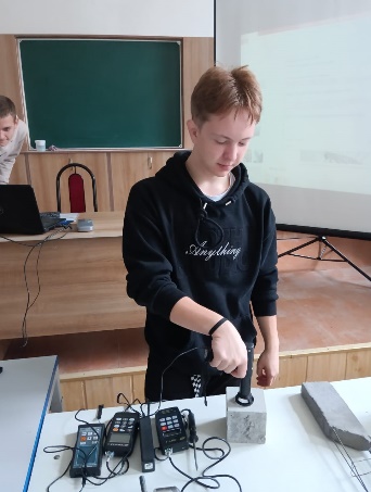 Выступления студентов сопровождались демонстрацией презентаций, фильмов, измерительных приборов, применяемых для испытания строительных изделий.