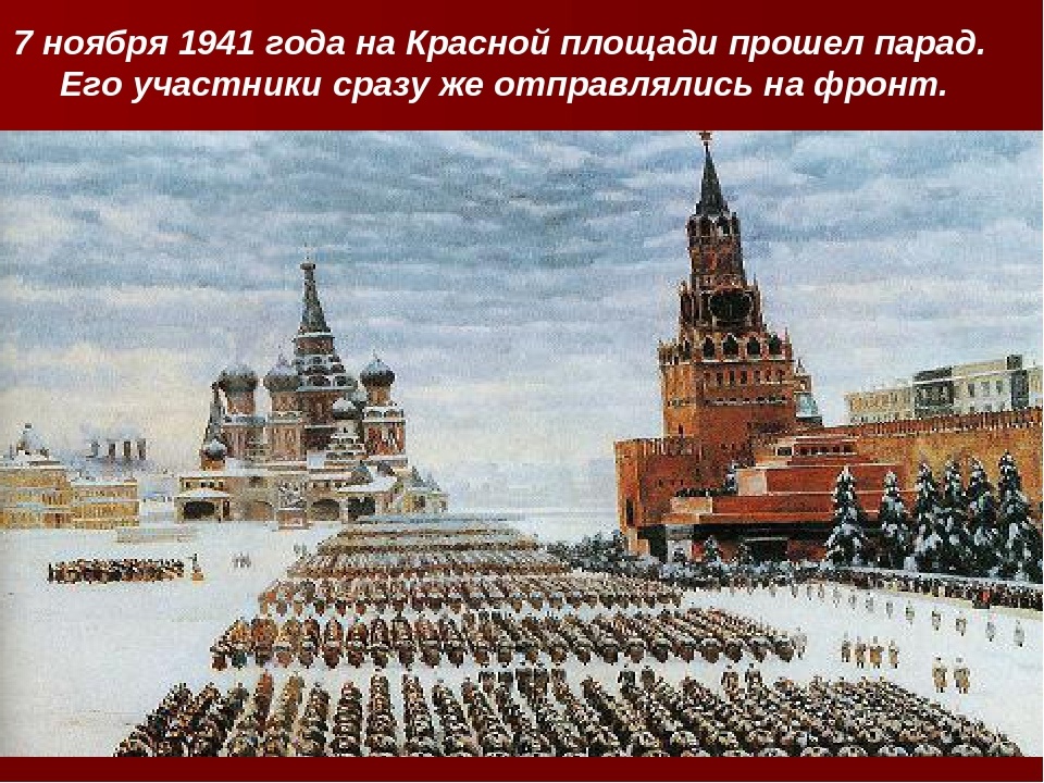 7 ноября – памятная дата отечественной военной истории. В этот день в 1941 году на главной площади страны состоялся традиционный военный парад в честь годовщины Октябрьской революции. Но этот парад стал особенным, поворотным моментом в истории России, а также Великой Отечественной и Второй мировой войн: весь мир увидел, что Красная армия и Советский Союз полны решимости защищать свою Родину при любых обстоятельствах.