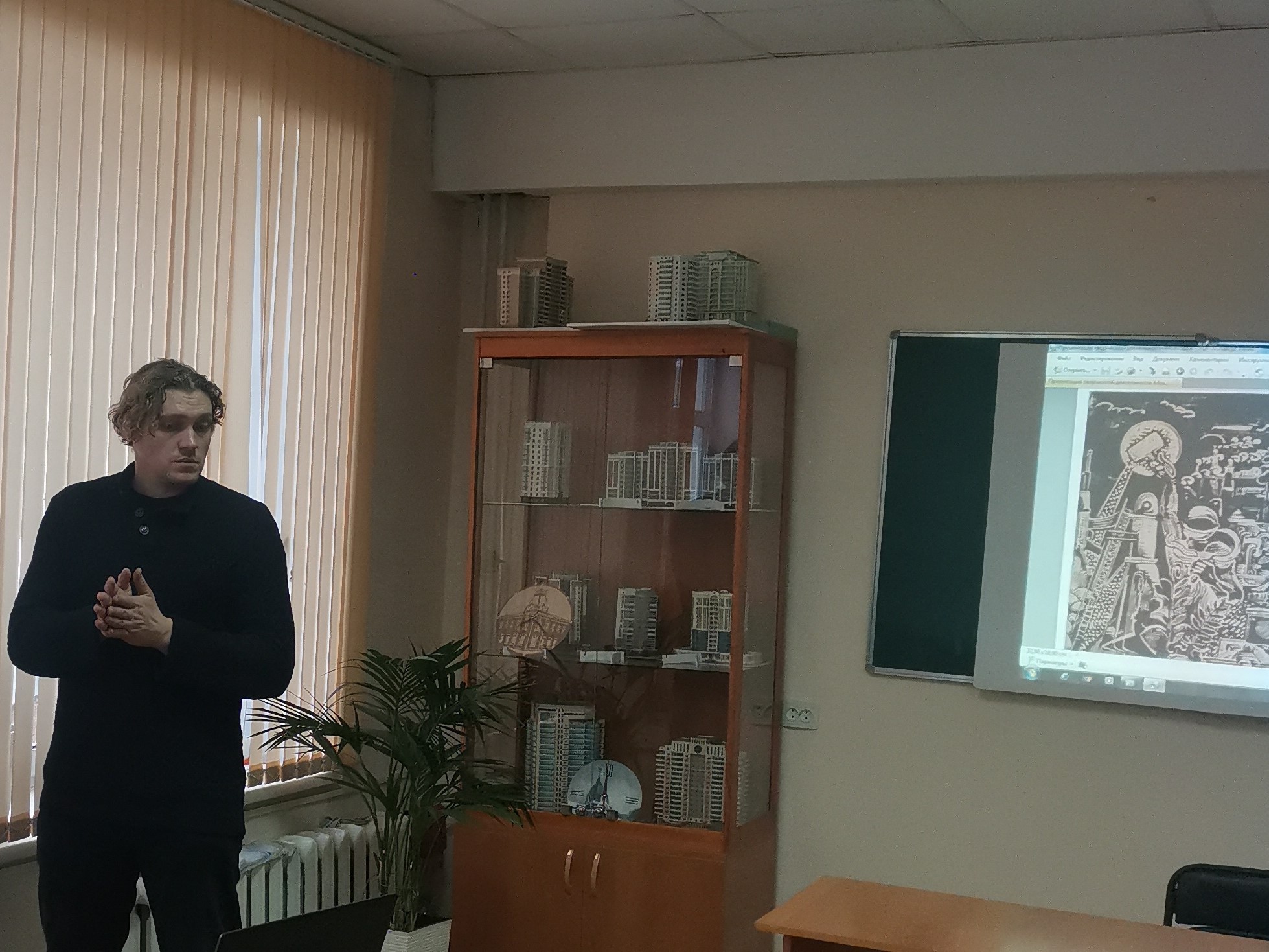 12 ноября 2024 года в Алтайском архитектурно-строительном колледже в рамках декады ПЦК «Архитектура и Дизайн (по отраслям)» состоялась встреча студентов групп Д-22 и А-31 с членом Союза художников России, преподавателем кафедры художественной культуры и декоративно-прикладного творчества Алтайского государственного института культуры Мозговым Иваном Сергеевичем, участником, лауреатом и дипломантом ряда профессиональных выставок и конкурсов.