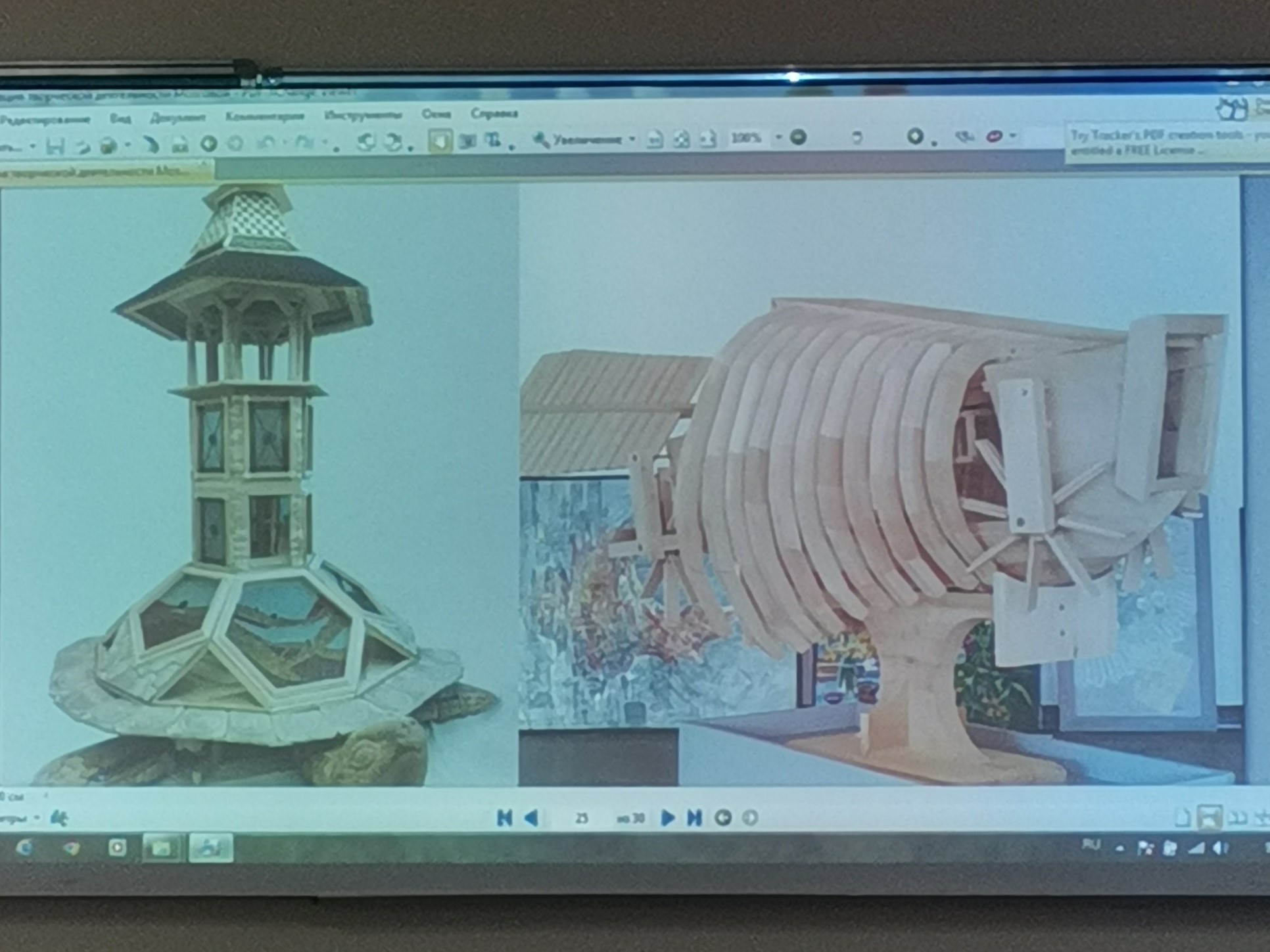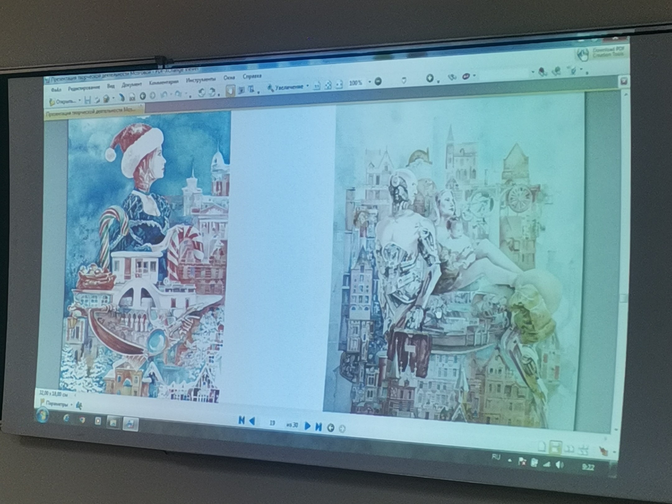 Иван Сергеевич рассказал будущим архитекторам и дизайнерам о своем творческом пути с университета по сегодняшний день, участии в краевых и федеральных выставках, общественной деятельности. Художник продемонстрировал графические и объемные работы разных лет, подробно описывая технологию их создания. Мозговой И.С. обсудил со студентами важность самореализации в творчестве. Студенты принимали активное участие в беседе.