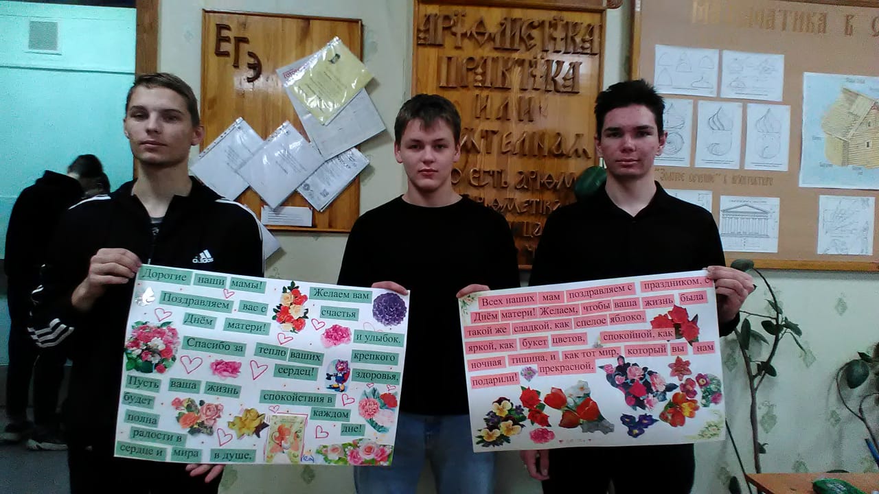 Студенты группы 12а активисты Движения Первых вместе с советником по воспитанию Т.Н. Фефеловой присоединились к Всероссийской социальной акции «Мама, я тебя люблю!», вошедшей в традиции празднования Дня матери. 20 ноября они приняли участие в мероприятии «Письмо маме» библиотеки колледжа (П.Сухова, 71).