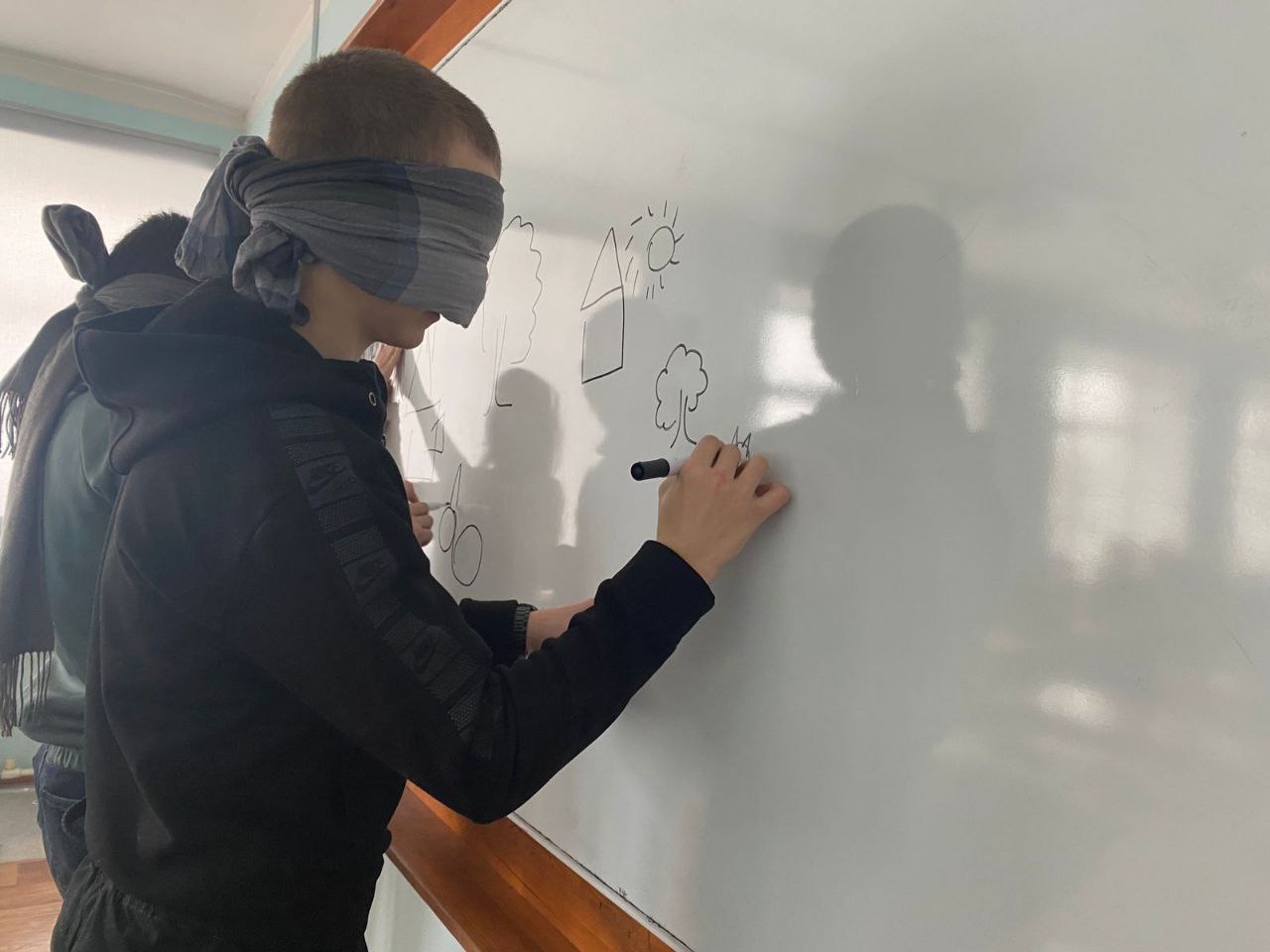Также ребята смогли ощутить на себе мир человека с ограниченными возможностями, выполнив команды с завязанными глазами.