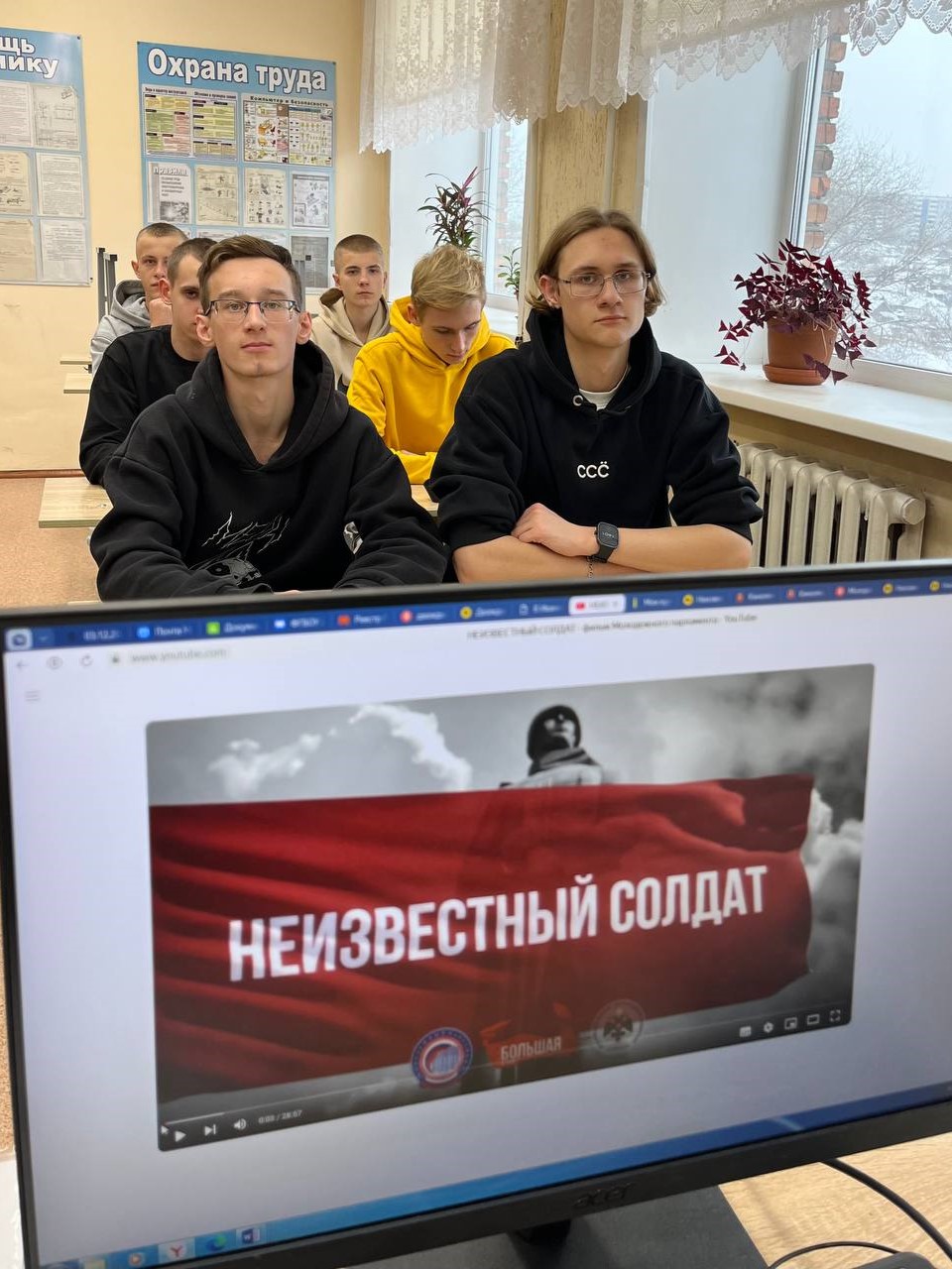 Ребятам были представлены документальный фильм «Неизвестный солдат», видеофрагменты художественных фильмов «Дважды рожденный», «У деревни Крюкова»