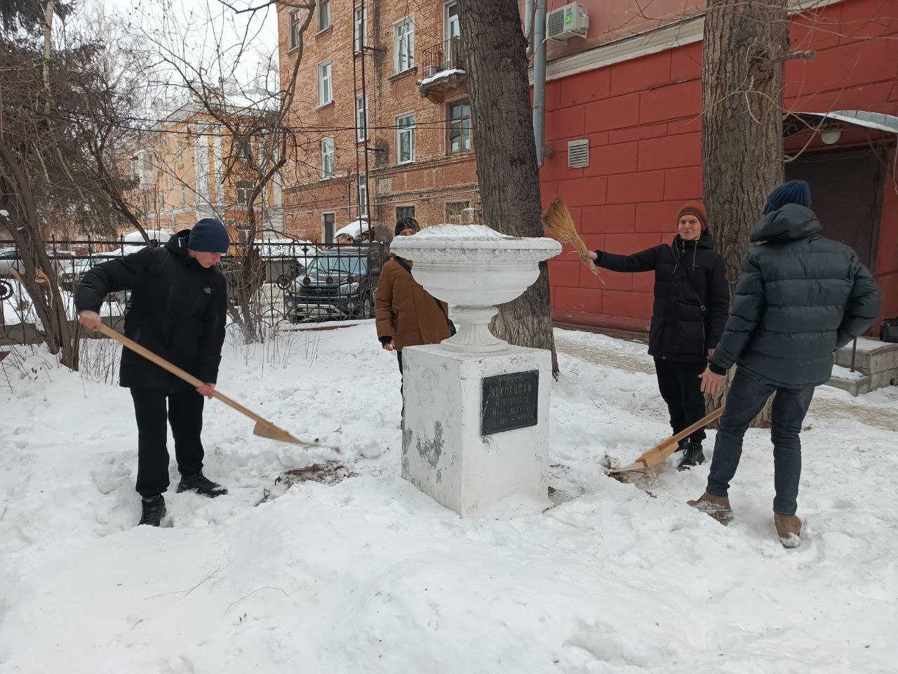 Студенты, понимая важность сохранения исторической памяти, решили внести свой вклад в сохранение наследия героев. Они организовали субботник, чтобы привести в порядок территорию вокруг памятника А.Н. Чеглецову. Ребята тщательно убрали мусор, подметали дорожки и очистили памятник от пыли и снега. В ходе работы они также обсудили значимость таких мероприятий и необходимость помнить о тех, кто внес вклад для будущего поколений.
