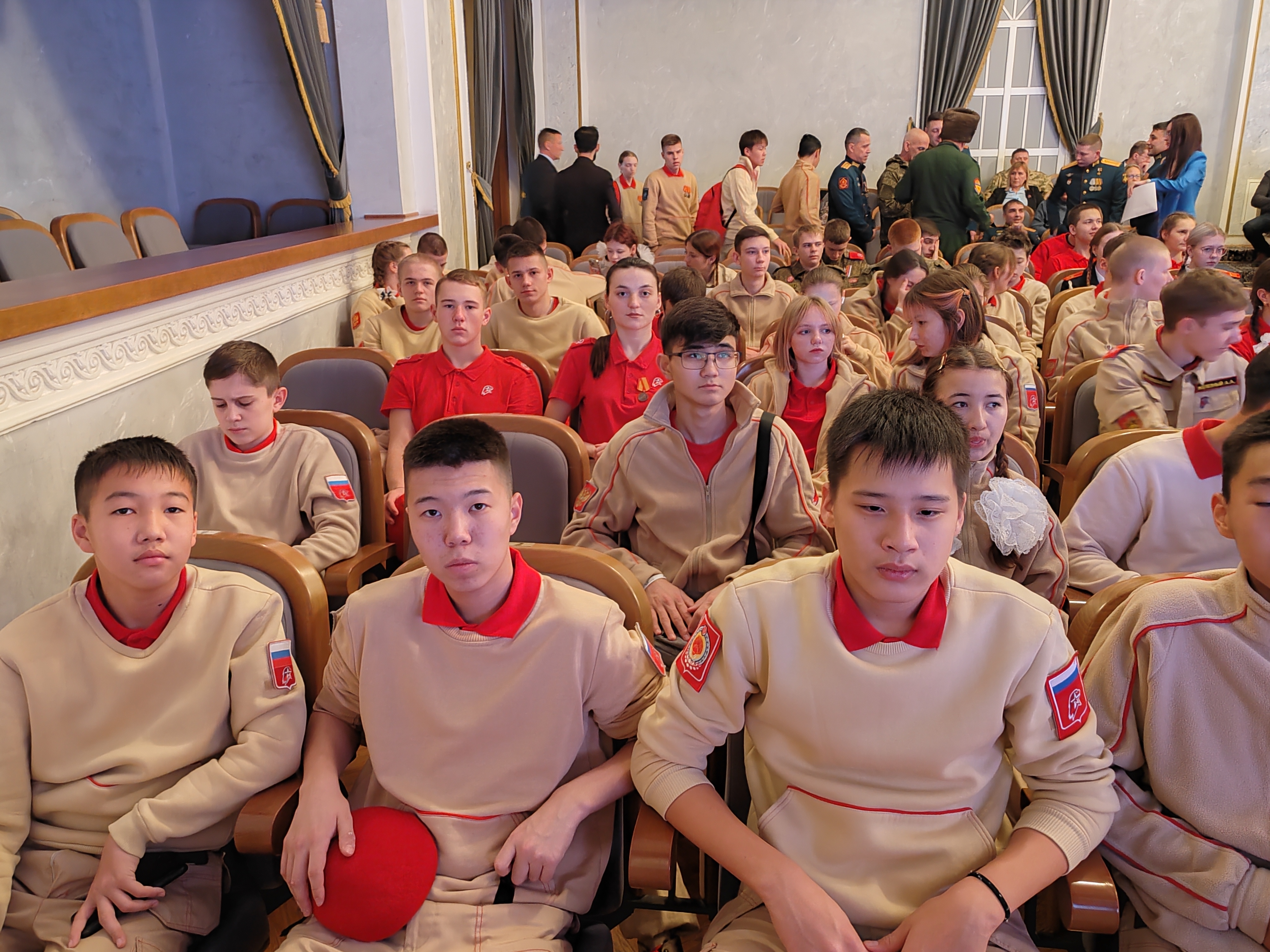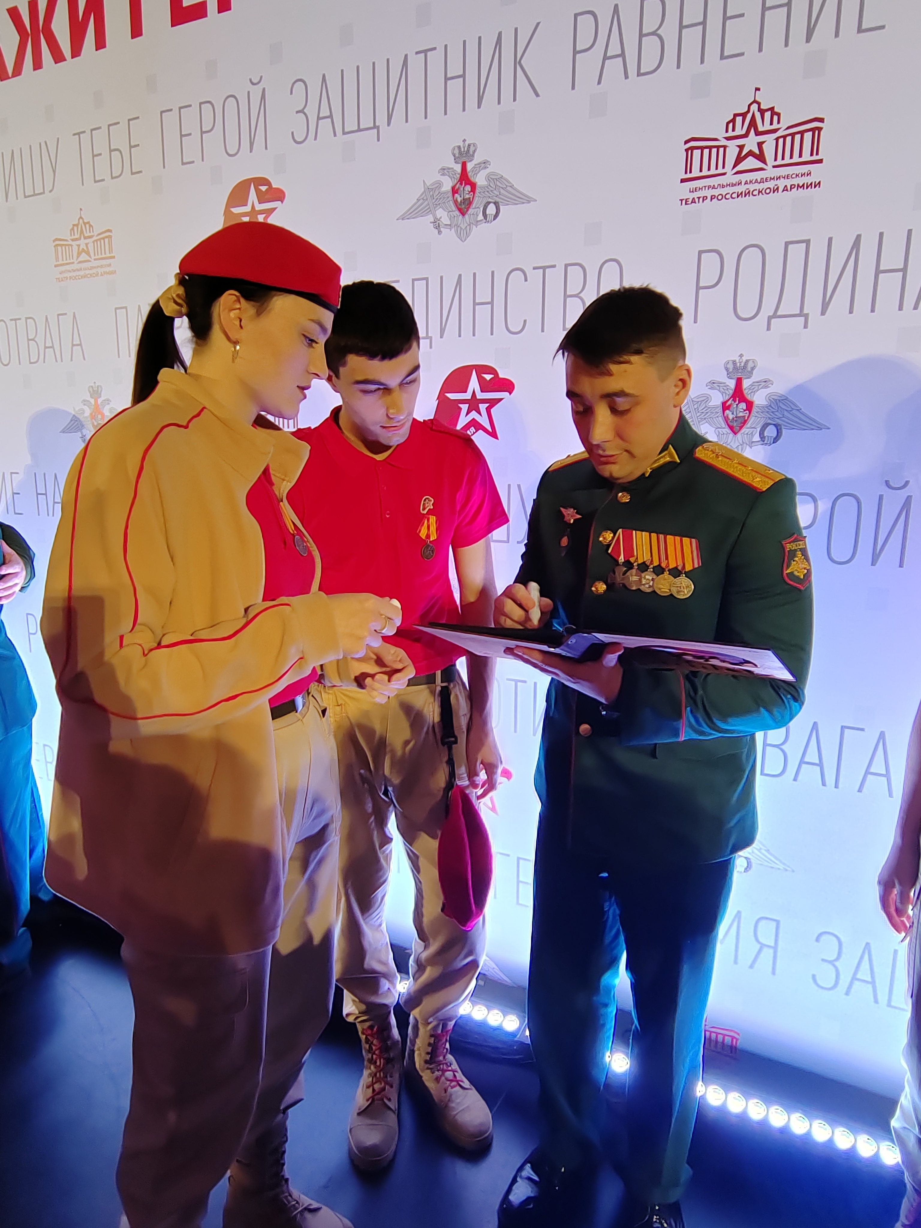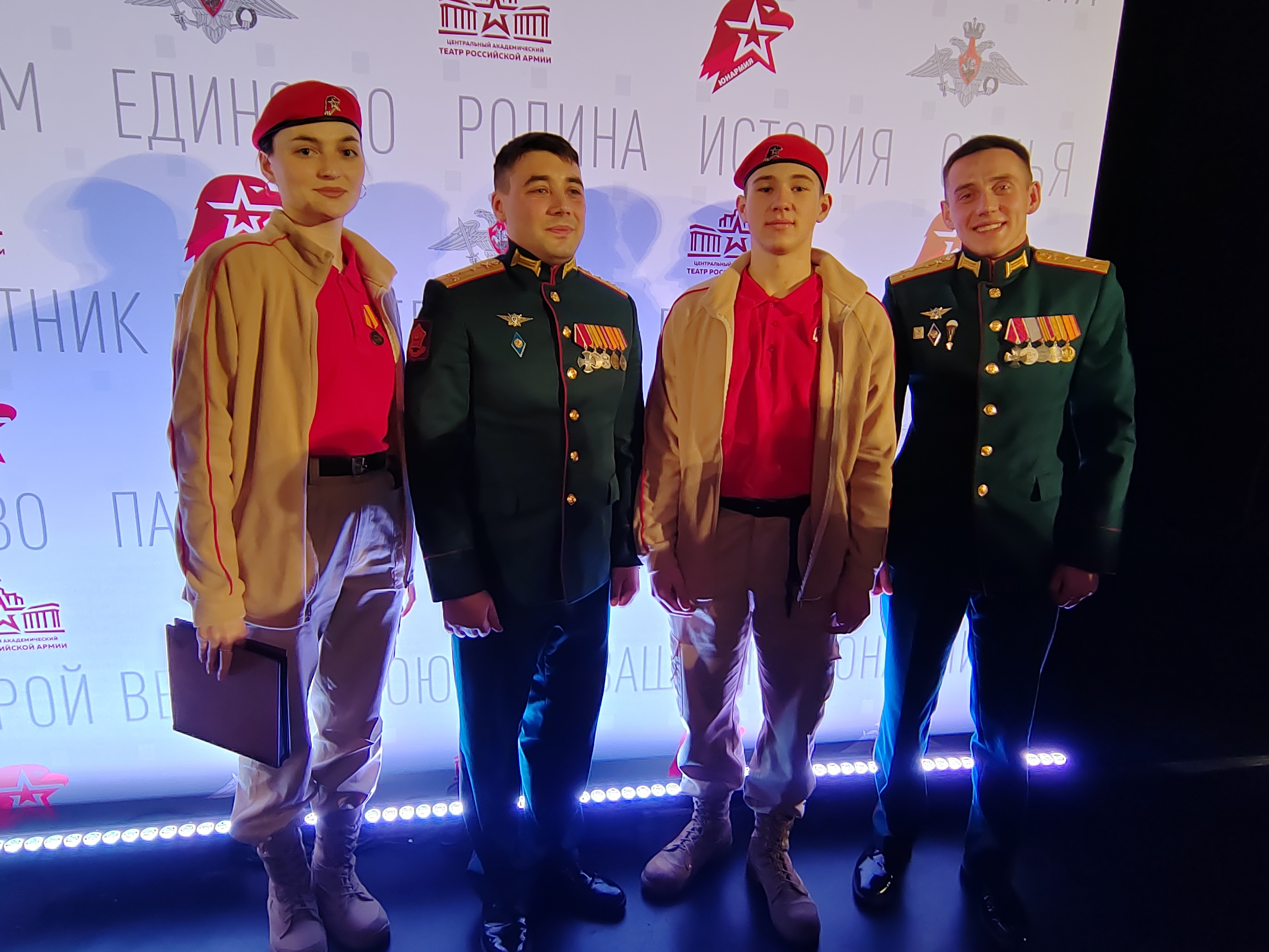 9 декабря, в День Героев Отечества, в Центральном академическом театре Российской Армии юнармейцы встретились и пообщались с участниками специальной военной операции: Героями России – Алексеем Жариковым и Александром Бородиным, кавалерами Ордена Мужества – Артемом Рашевским, Сергеем Оборским, Александром Мельниковым, Романом Ларионовым, Александром Жуковым и Игорем Самойловым. Ребята задали Героям вопросы о мужестве, товариществе, людях, которые являются для них примером, талисманах и силе Родины.