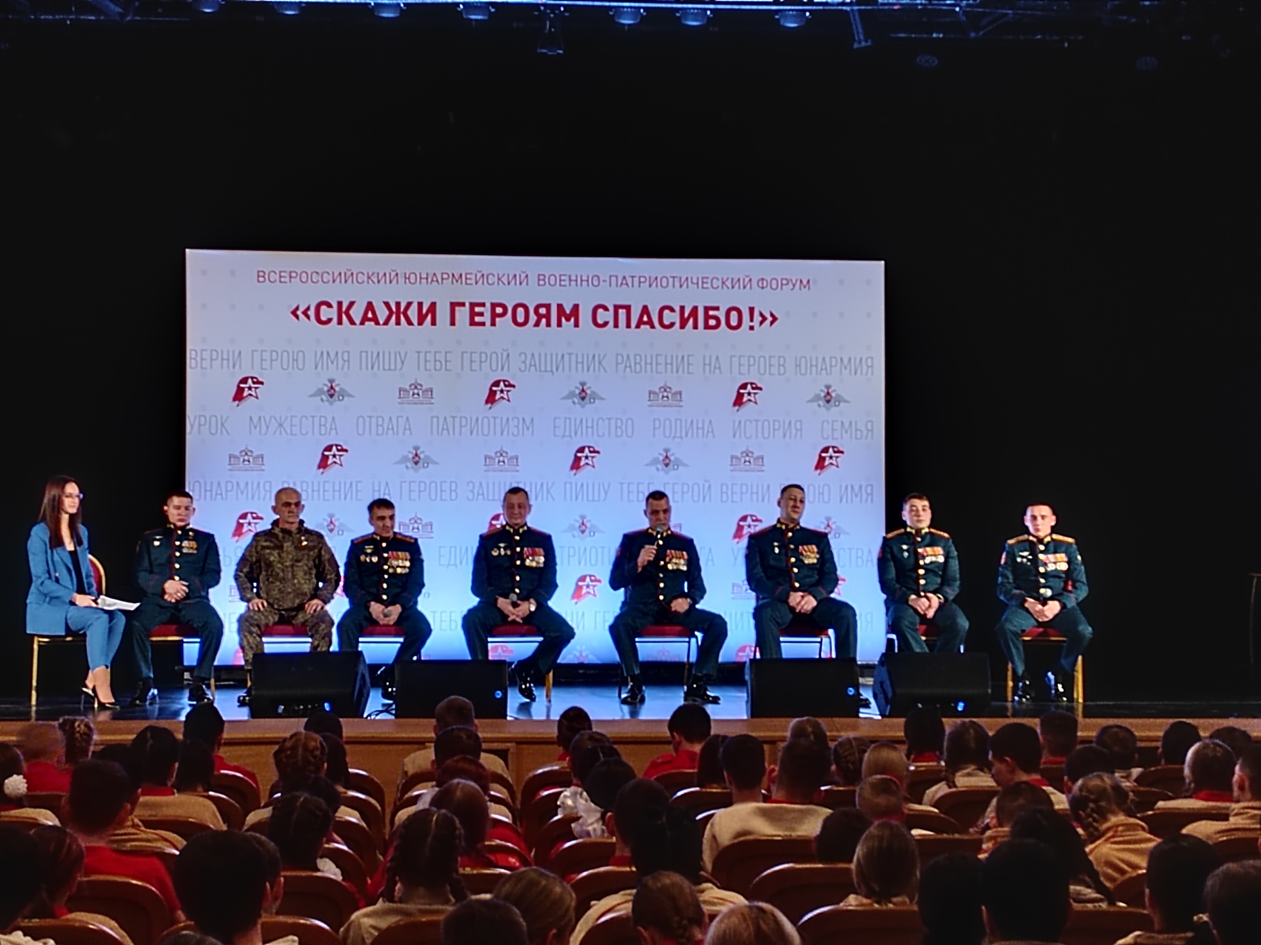 Итоговое мероприятие Всероссийского юнармейского военно-патриотического форума «Скажи Героям спасибо» также прошло в Центральном академическом театре Российской Армии, на котором присутствовало более 1,5 тысяч участников Движения.