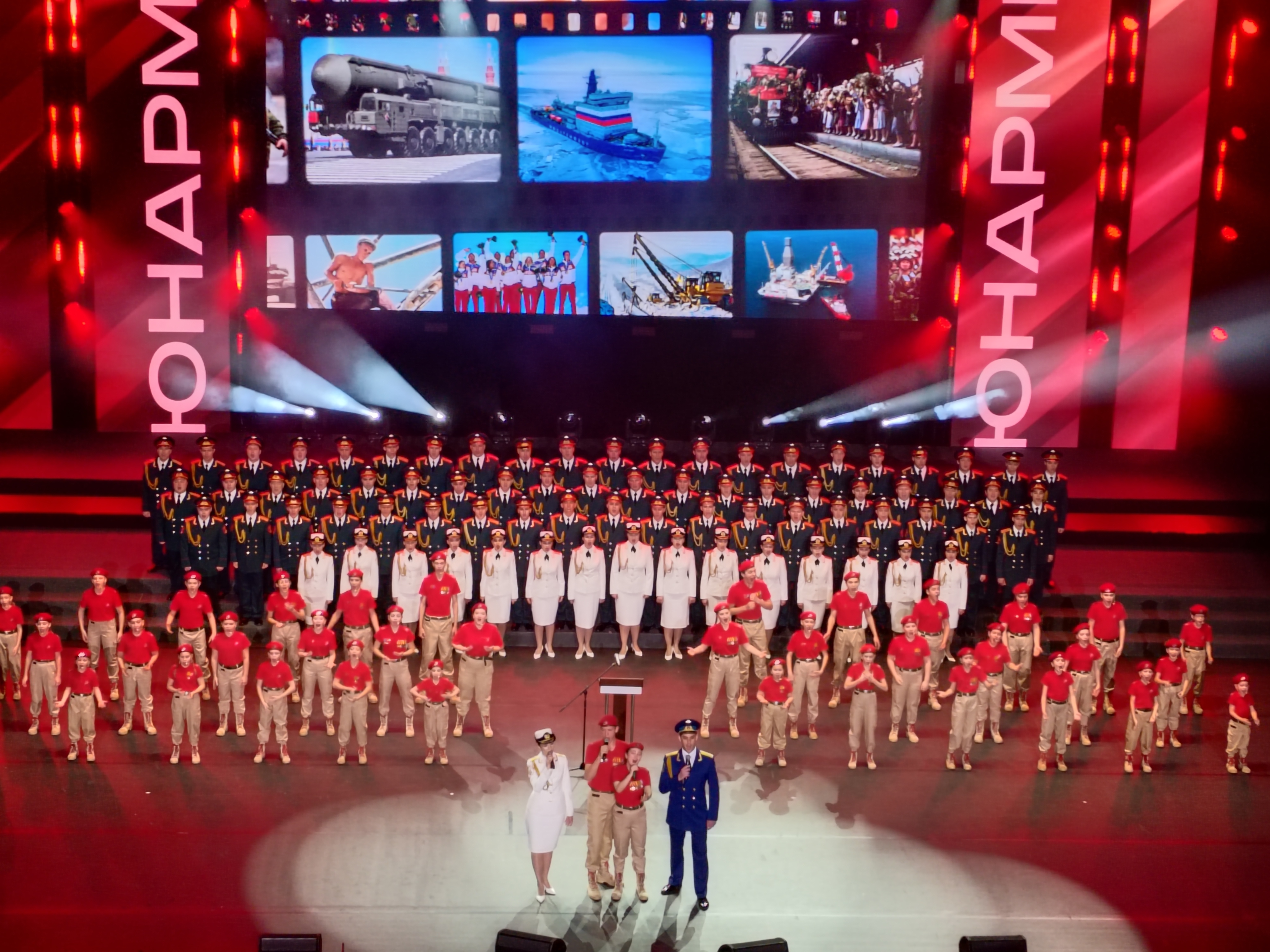 На мероприятии провели телемосты с участниками специальной военной операции и юнармейскими отрядами по всей стране, подвели итоги юнармейских акций.