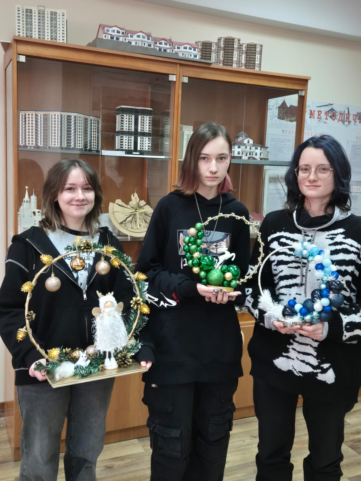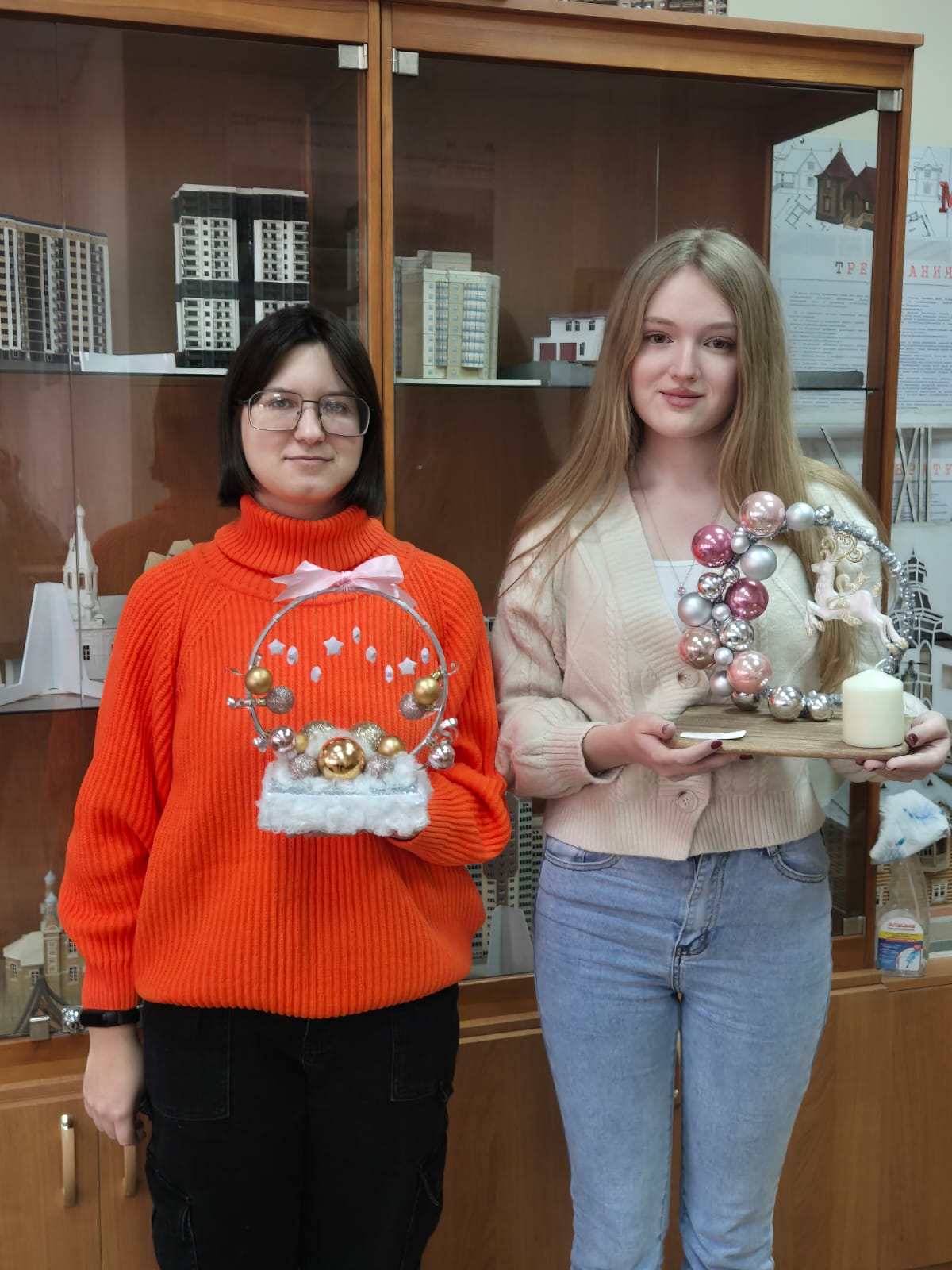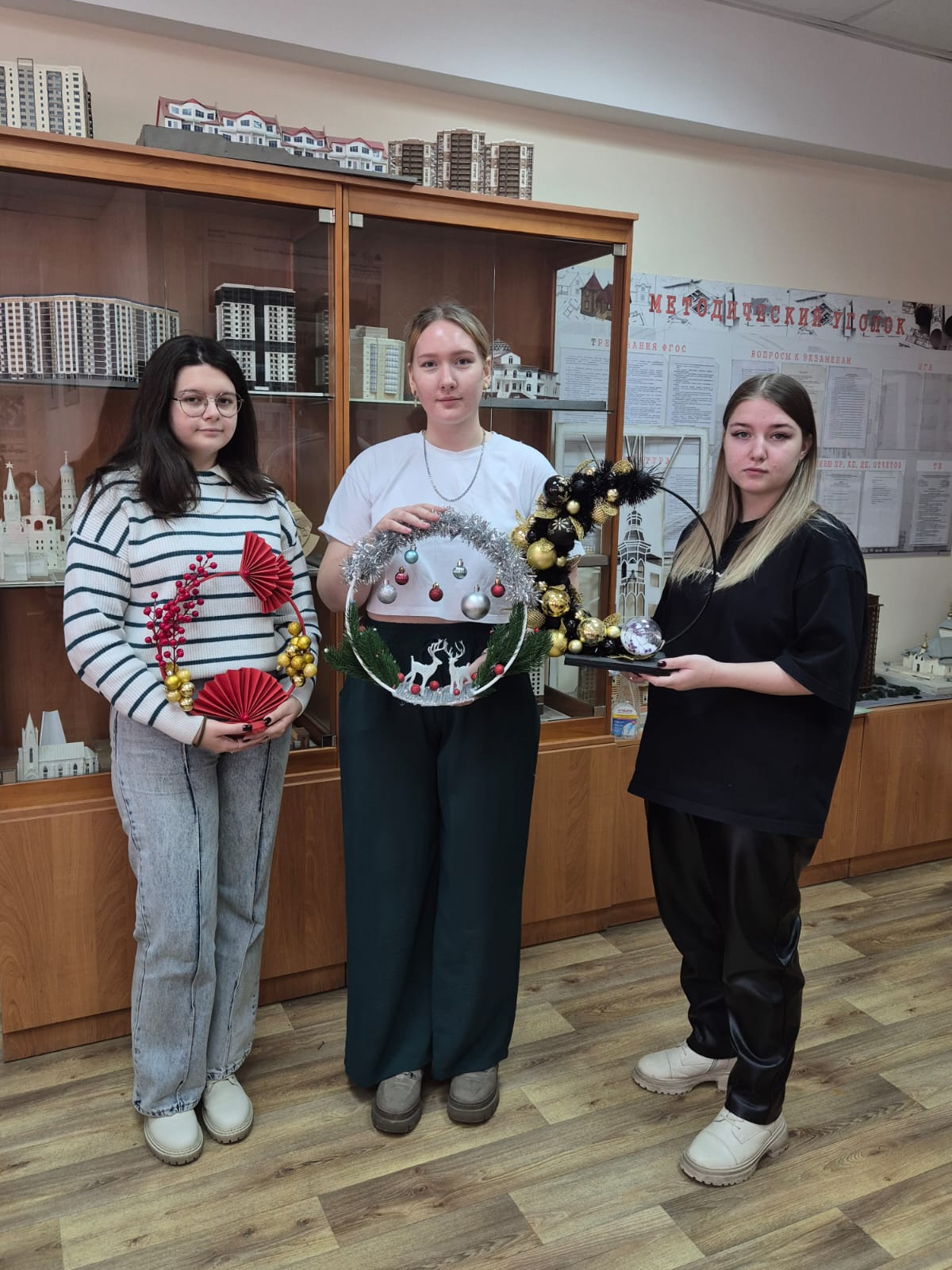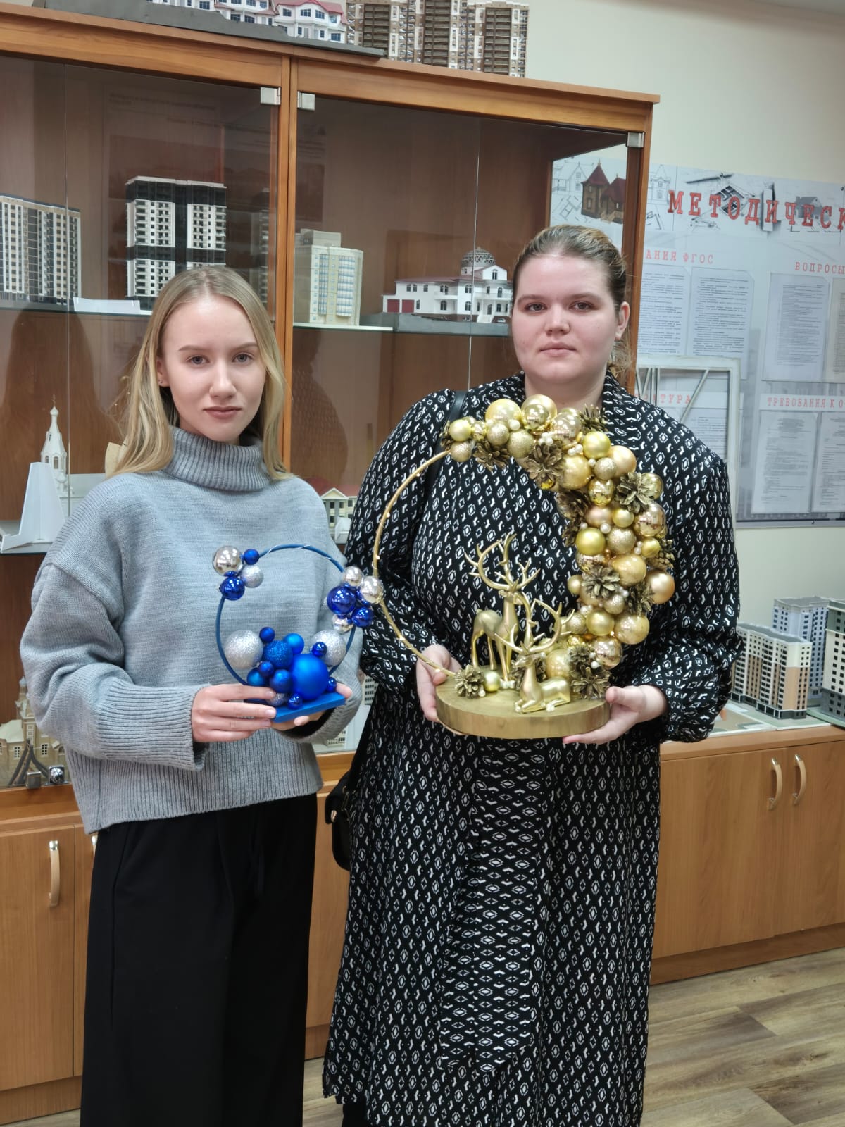 Новогодние композиции, выполненные студентами 4 курса группы Д-11 специальности Дизайн (по отраслям), были представлены со 2 по 14 декабря. Выставка стала одной из ярких точек маршрута в поисках праздничного настроения.