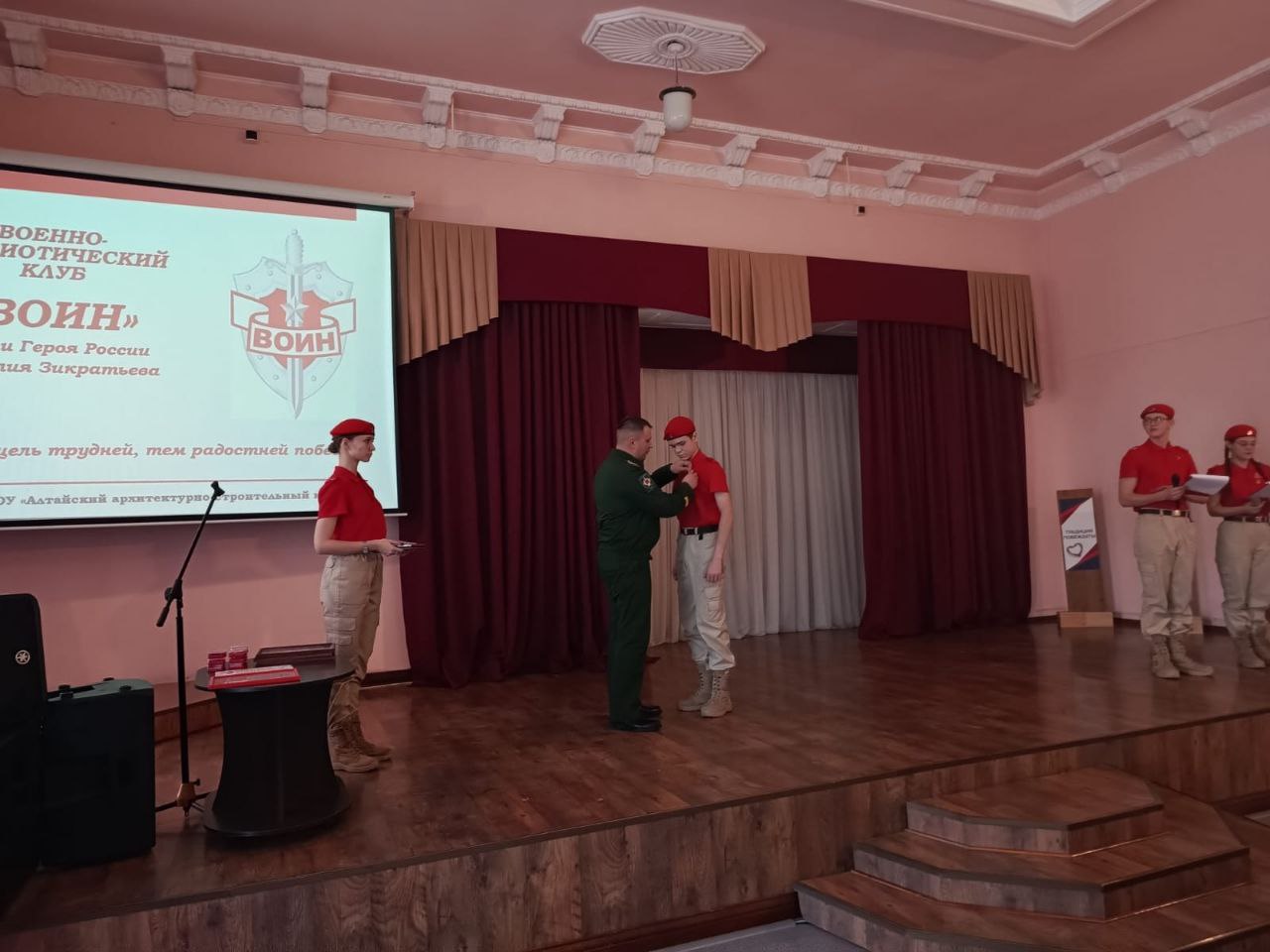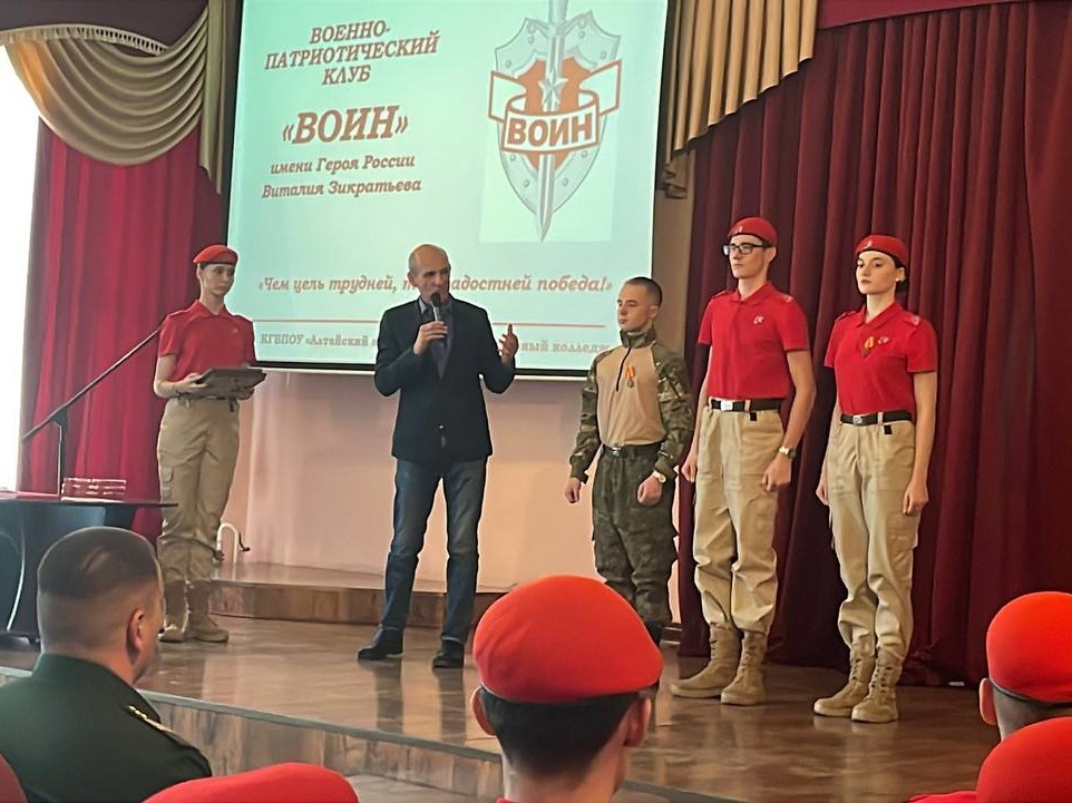 Кузнецов Сергей Сергеевич, руководитель центра специальной подготовки ассоциации «Патриоты Алтая», вручил курсантам клуба Судакову Алексею, Грезневу Даниилу и Коровиной Елизавете Сертификаты участников проекта «Молодой Воин».