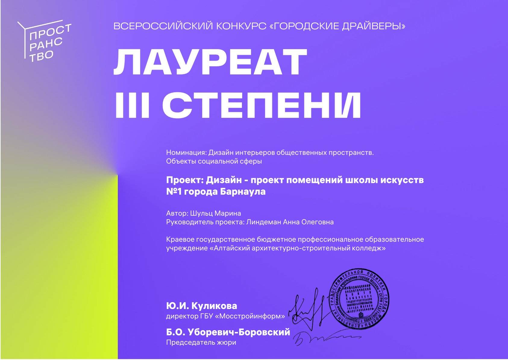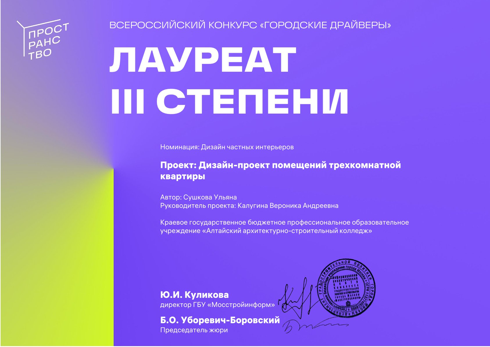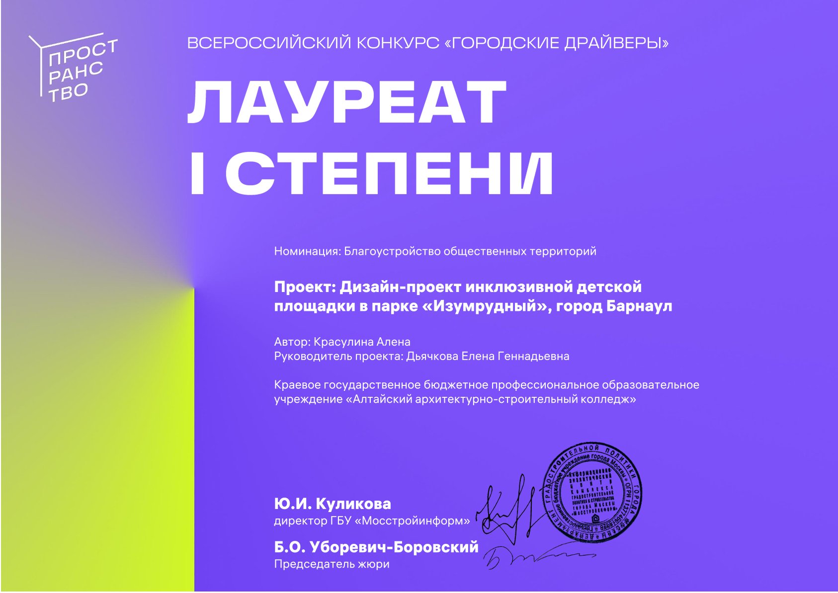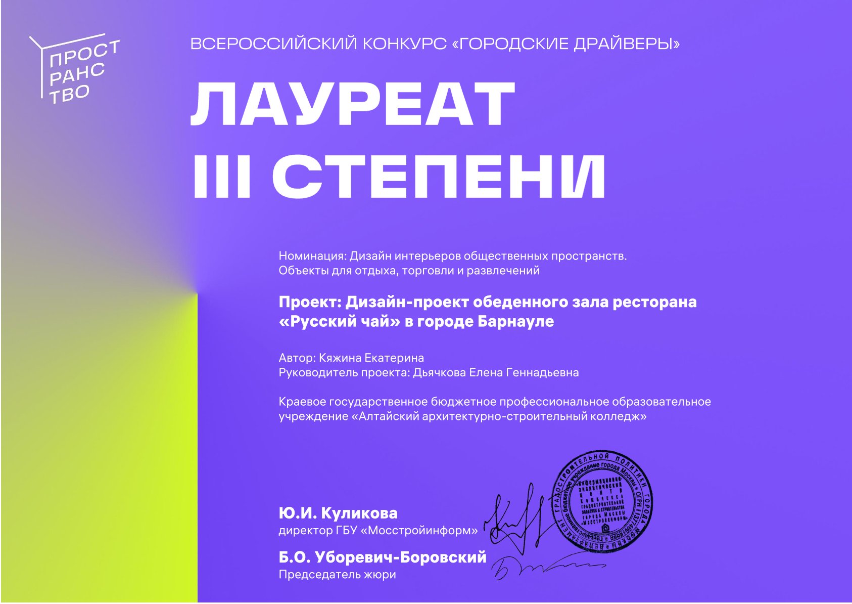 Подведены итоги 9-го сезона Всероссийского Конкурса выпускных квалификационных работ «Городские Драйверы» для студентов СПО, занимающихся архитектурным, дизайнерским, ландшафтным проектированием!