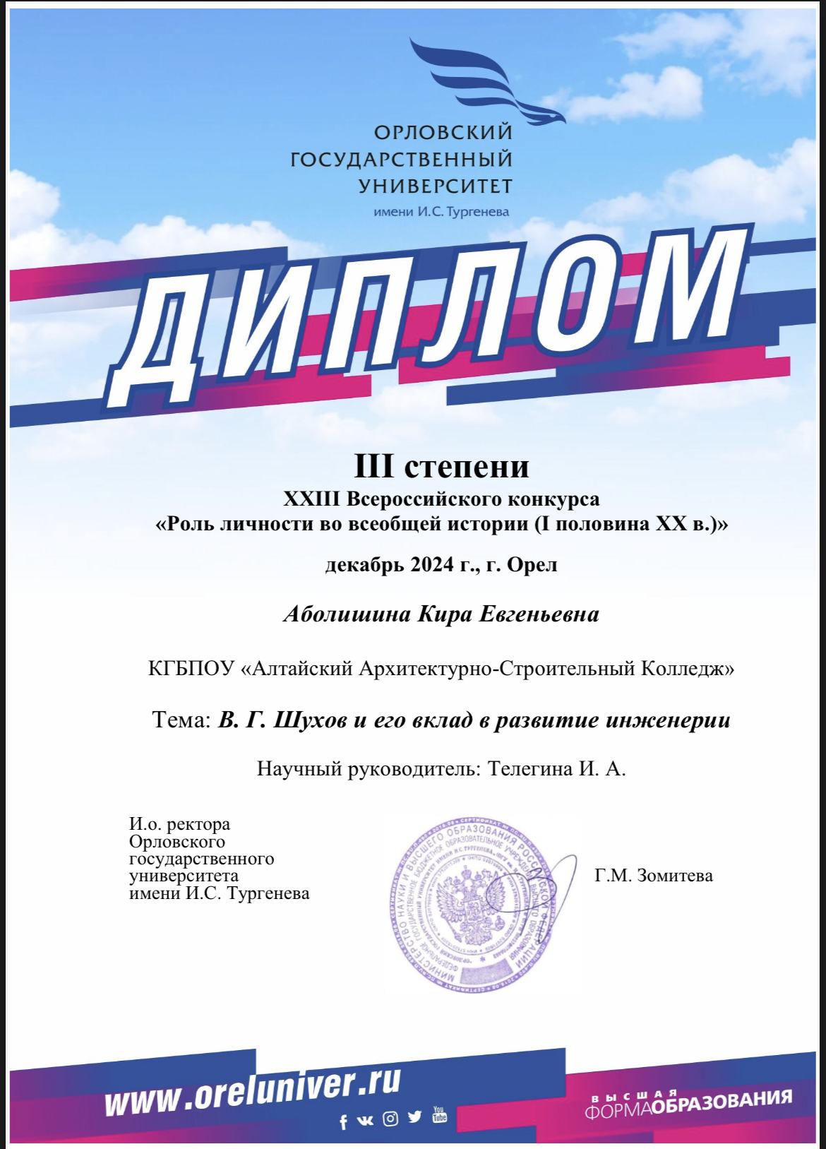 Кира Аболишина, студентка группы А-31, второй год принимает участие в конкурсе, занимая призовые места среди ВУЗов и ССУЗов России.