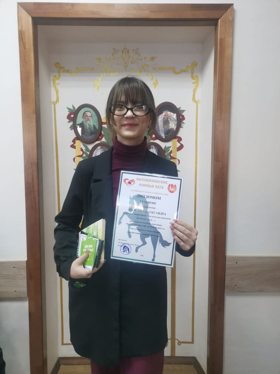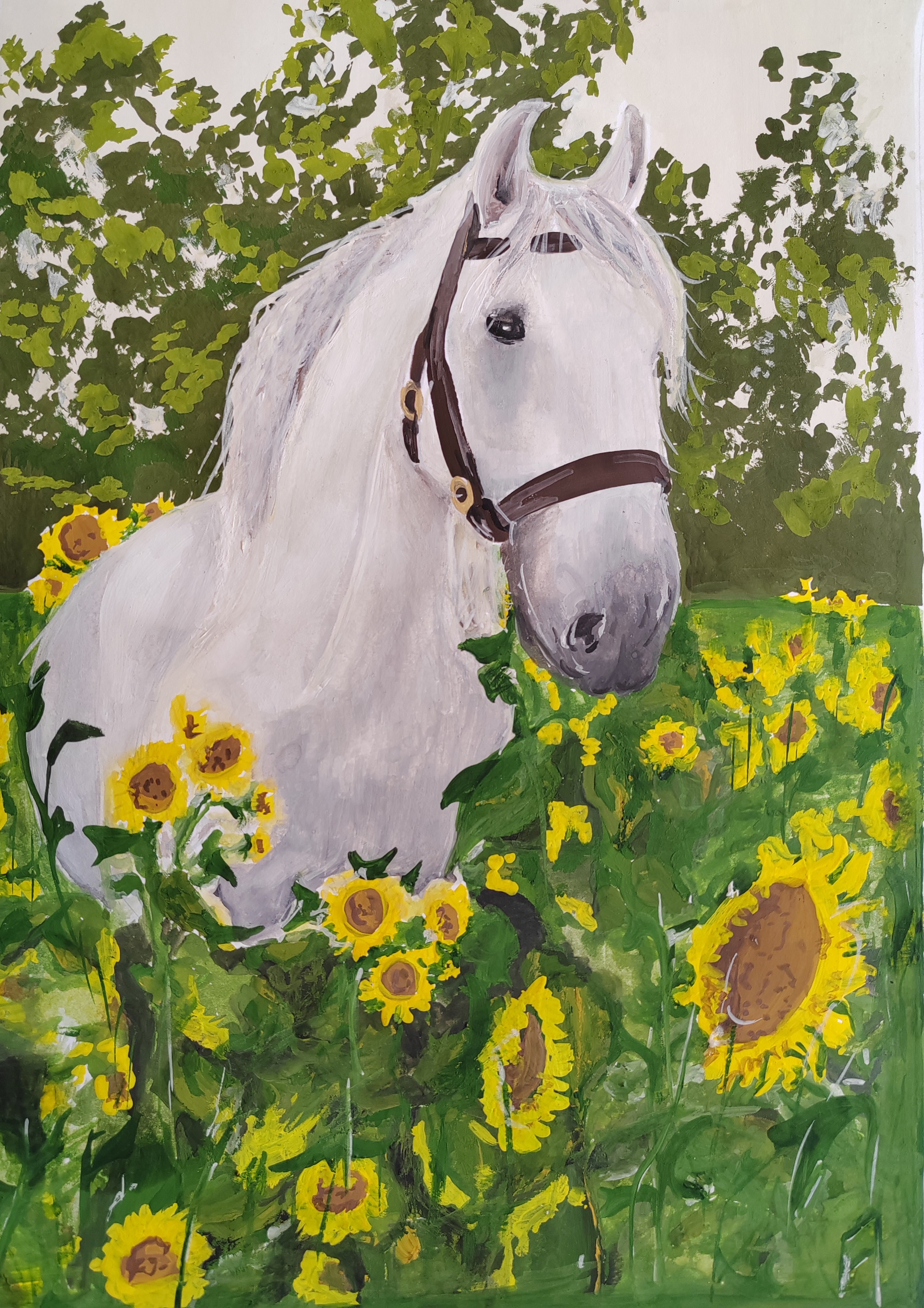 Дягилева Александра (группа Д-41) награждена Дипломом I степени. Её работа «Лошадь в подсолнухах» покорила не только членов жюри, но и всех посетителей выставки!