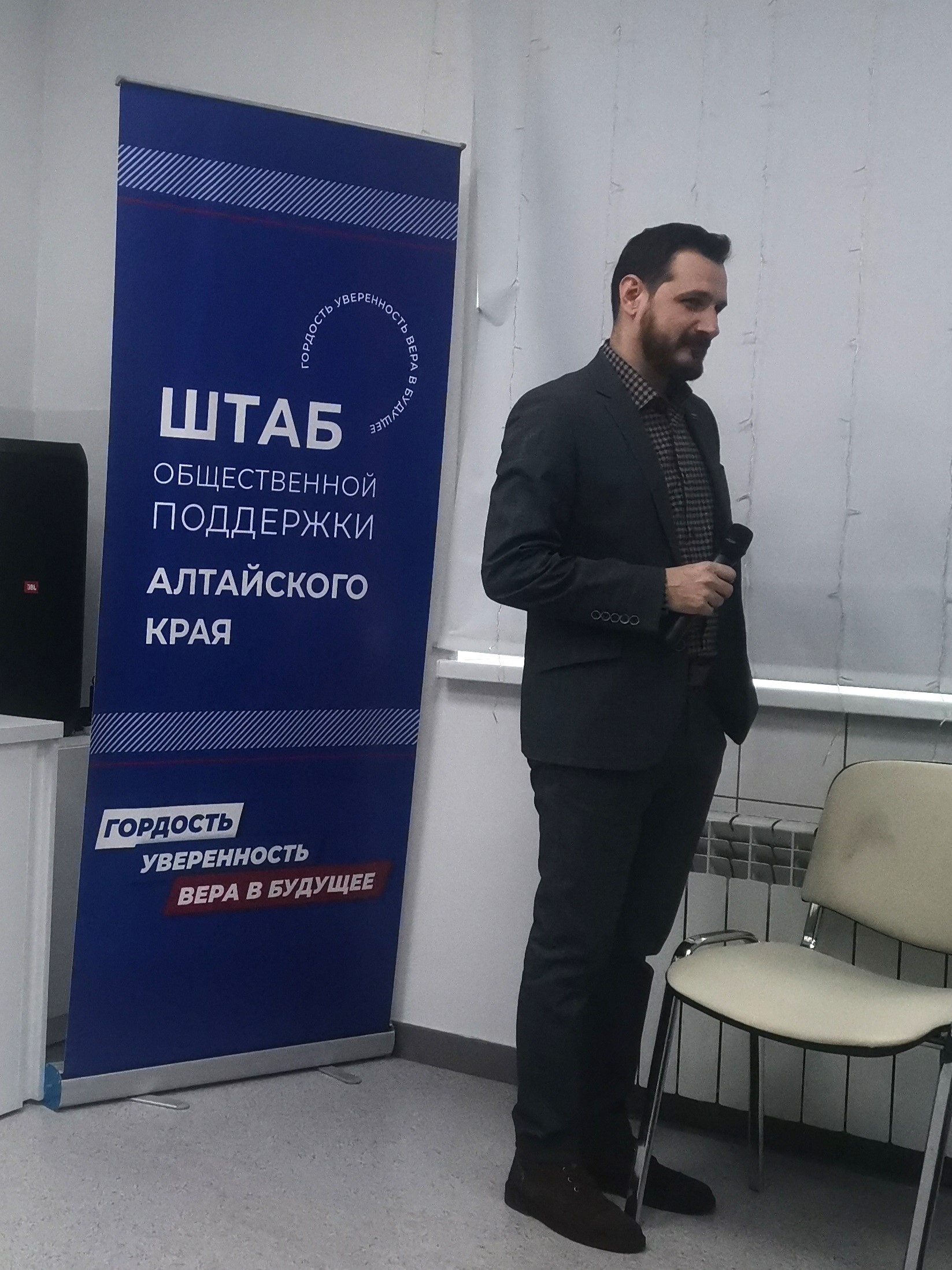 12 февраля студенты групп А-41, А-42, А-31 специальности «Архитектура», а также преподаватели Дьячкова Е.Г., Коршикова С.А., Куркин А.А., Петракова Л.Д. посетили открытую встречу с архитектором, членом Союза архитекторов России, Атаджановым Андреем Владимировичем, проходившую в Штабе общественной поддержки «Единой России» в Алтайском крае.