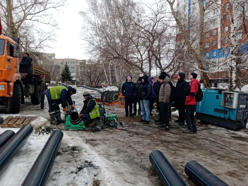 В ходе визита студенты ознакомились с процессом сварки полиэтиленовых труб большого диаметра на современном сварочном оборудовании, а также с устройством и технологией монтажа канализационных колодцев.