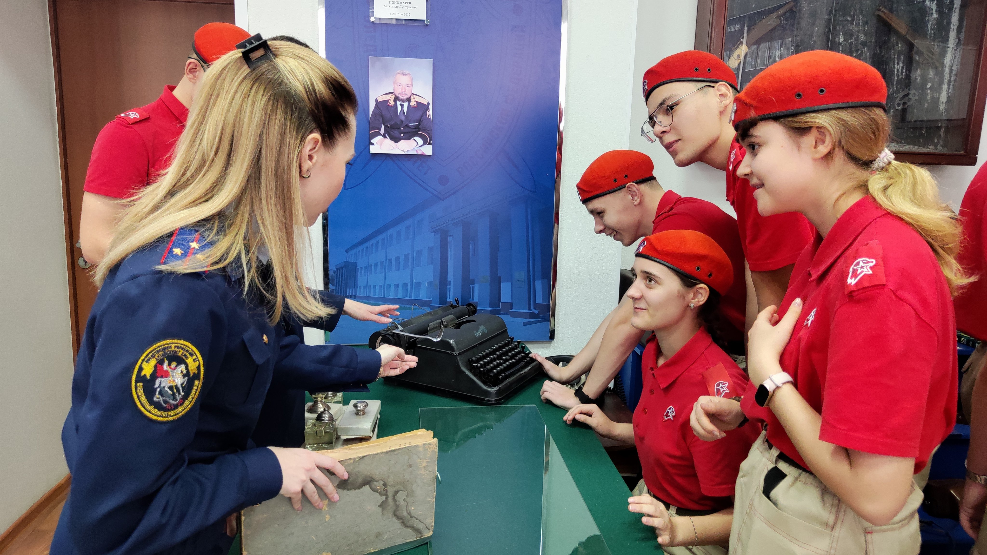 В рамках встречи старший помощник руководителя следственного управления Людмила Рязанцева рассказала гостям об истории ведомства и буднях следователей и криминалистов. Кульминацией визита стала экскурсия в музей истории управления, которая вызвала неподдельный интерес у ребят. Юнармейцы смогли в буквальном смысле прикоснуться к истории: они увидели уникальные экспонаты - от орудий преступлений прошлого и форменного обмундирования разных лет до макета рабочего места следователя середины XX века. Особое впечатление произвели подлинные материалы уголовных дел, написанные от руки, литература и техника, которую использовали в работе несколько поколений следователей.
