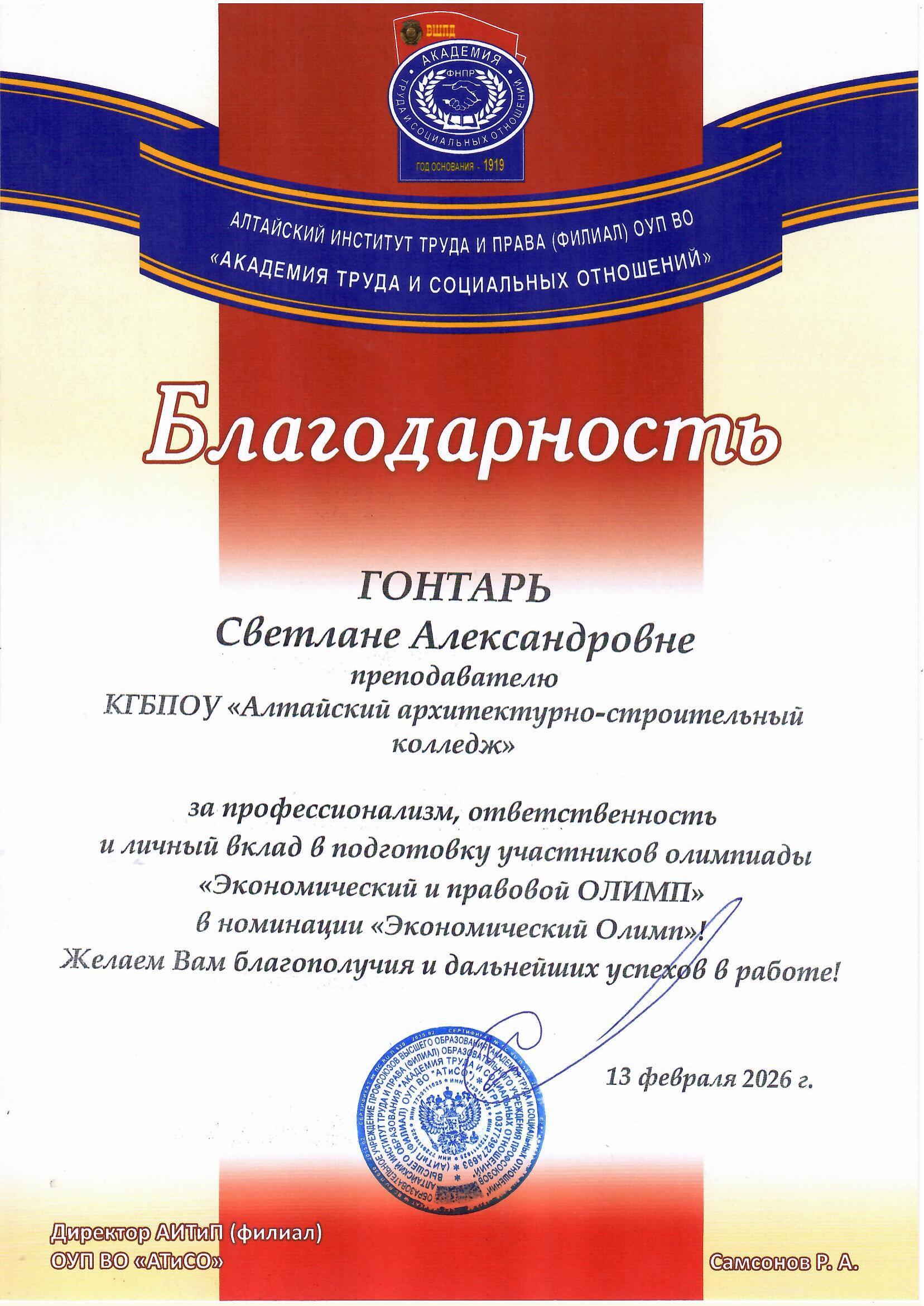 Алтайский институт труда и права проводит ежегодную олимпиаду «Экономический и правовой ОЛИМП 2026». Она охватывает два направления — экономику и право, предлагая участникам решать практические задания и кейсы, отражающие современные вызовы региона.