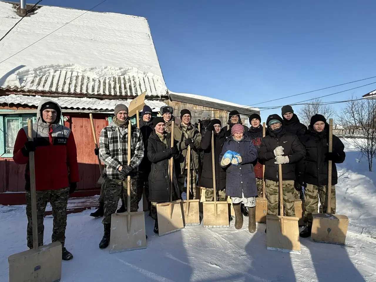 Ребят вкусно и сытно накормили в школьной столовой, и они отправились на выполнение главной задачи поездки — помочь очистить от снега придомовые территории ветеранов труда и войны. Ребята приехали поддержать женщин волонтёрской группы «С любовью от чистого сердца». Милые «паучки» (так ласково их называют жители села) каждый день изготавливают две, а то и три сети. Не всегда хватает времени и сил, чтобы справиться со снегом, а его в этом году выпало много.