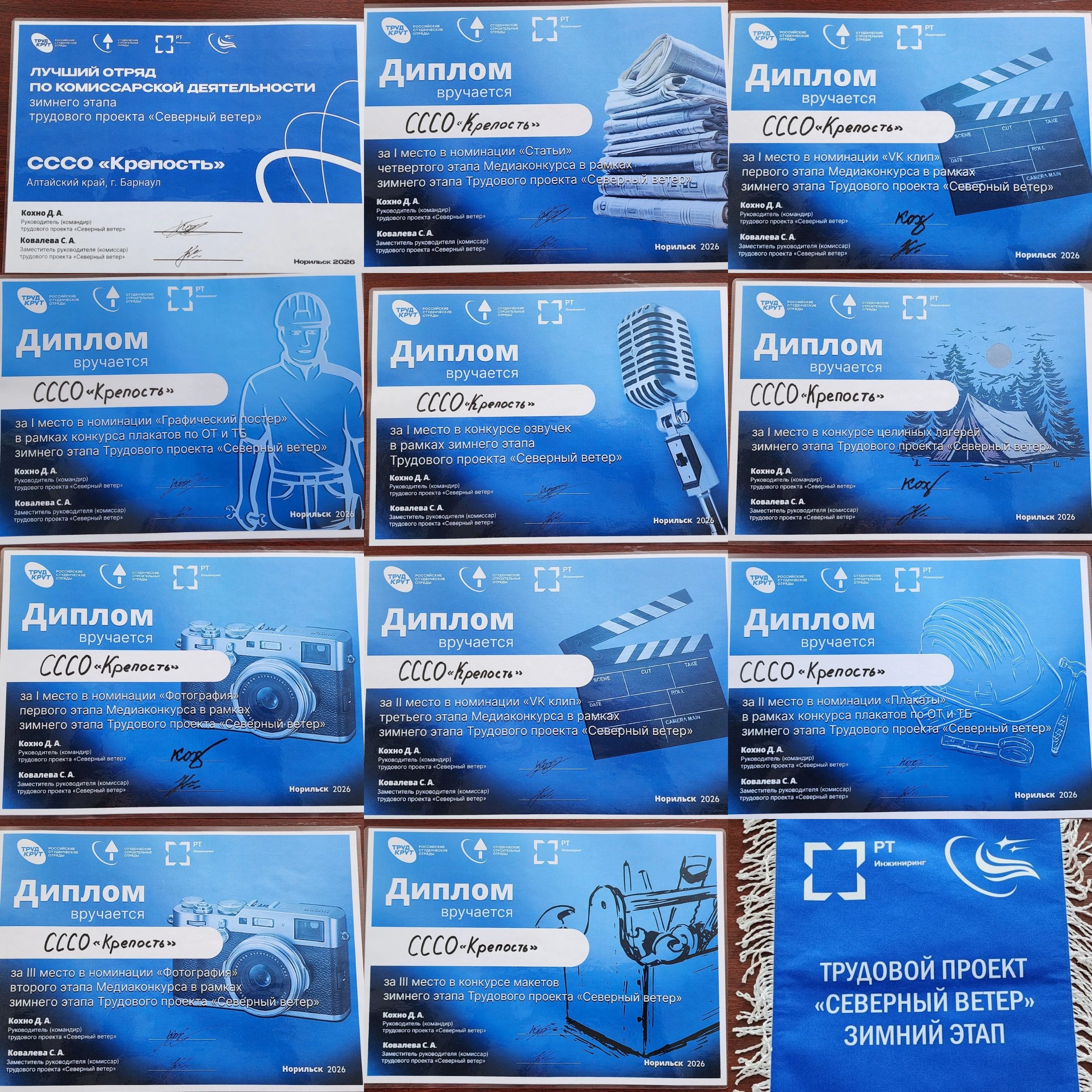 С 23 января по 25 марта CССО «Крепость» из КГБПОУ «Алтайский архитектурно-строительный колледж» впервые принимал участие в трудовом проекте «Северный ветер» 2026. «Северный ветер» — трудовой проект Молодёжной общероссийской общественной организации «Российские Студенческие Отряды». Ребята успешно трудились на строительном объекте в г. Норильск.